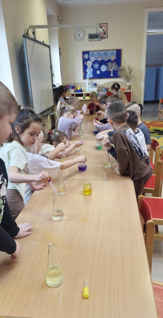 Dzieci wzięły udział w zajęciach badawczych, podczas których mogły poczuć się jak prawdziwi mali naukowcy. Z dużym zaangażowaniem mieszały kolorowe płyny, obserwowały zachodzące zmiany i wyciągały pierwsze wnioski. Takie doświadczenia nie tylko wzbudzają ciekawość świata, ale także rozwijają umiejętność obserwacji, Continue reading →