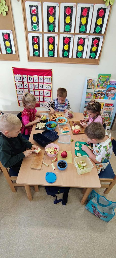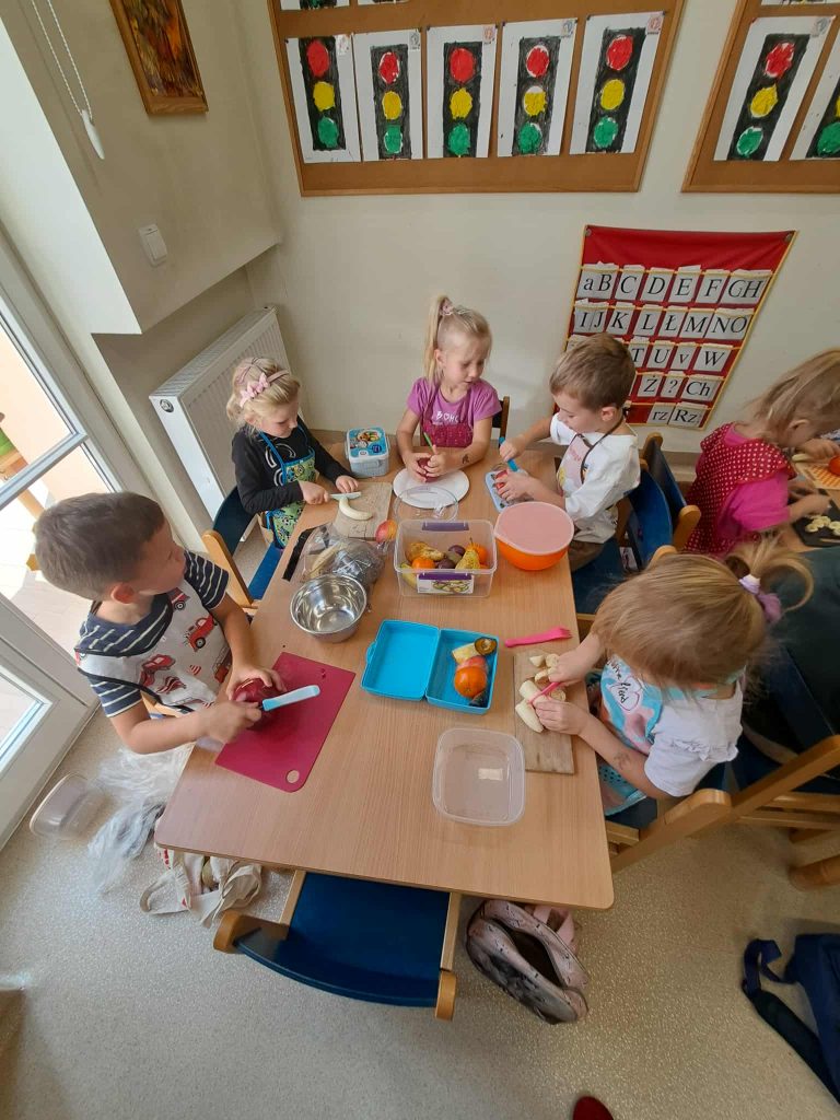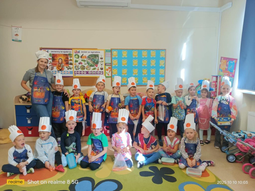 W ubiegłym tygodniu grupa Żabek poznawała warzywa i owoce, ich nazwy, kolory oraz znaczenie dla zdrowia. Następnie dzieci zamieniły się w małych szefów kuchni – włożyły czapki kucharskie i samodzielnie przygotowały sok z jabłek i marchewek. Na zakończenie zajęć wzięły Continue reading