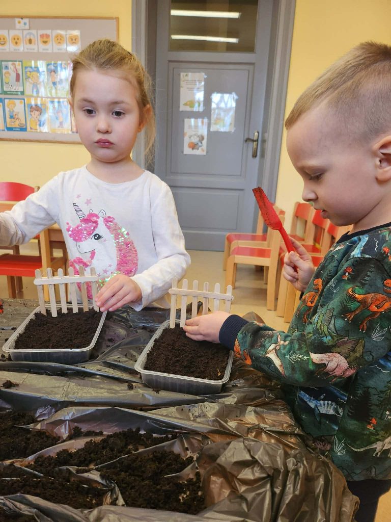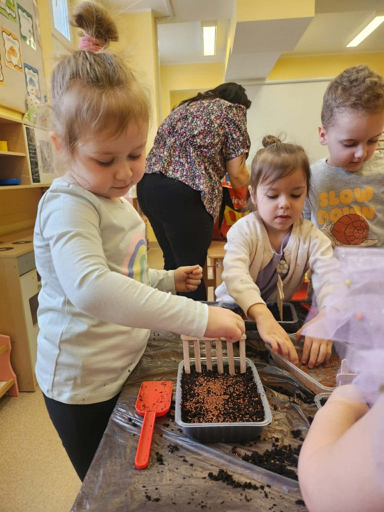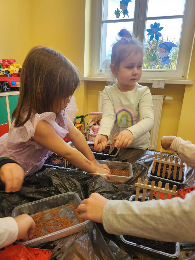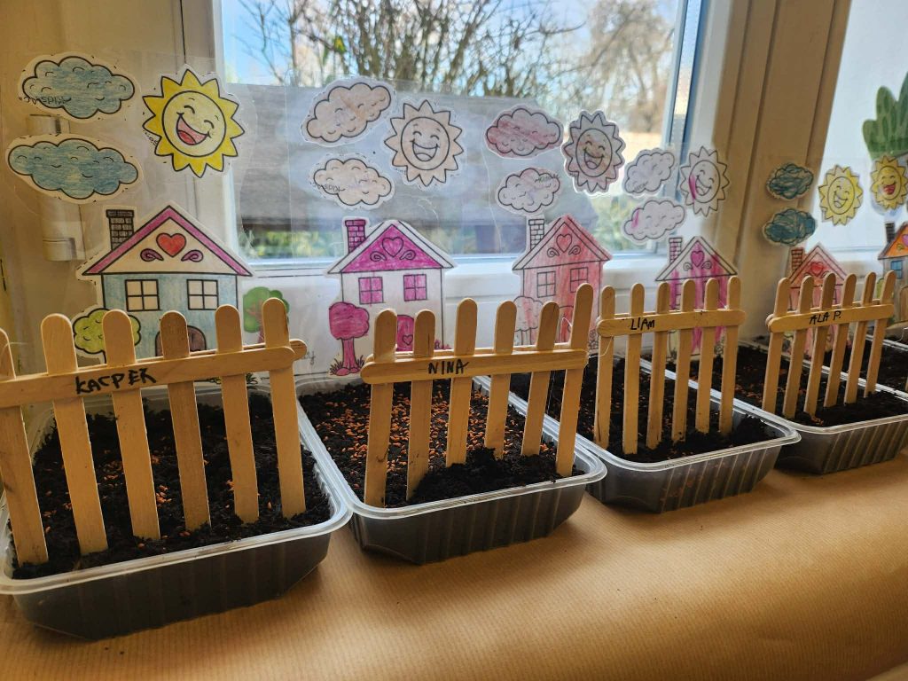 Dnia 19.03.2026r. Przedszkolaki samodzielnie zasiały rzeżuchę, która zajęła miejsce na naszych parapetach, tworząc piękny kącik przyrody w sali. Przez cały tydzień dzieci z troską podlewały swoje roślinki i uważnie obserwowały, jak kiełkują i rosną.Podczas zajęć przedszkolaki uczyły się odpowiedzialności i samodzielności, poznawały tajniki przyrody oraz proces wzrostu roślin. Dzięki codziennej pielęgnacji rozwijały spostrzegawczość i wrażliwość na przyrodę, ucząc się, jak dbać o otaczający je świat.