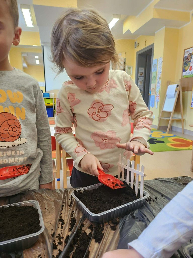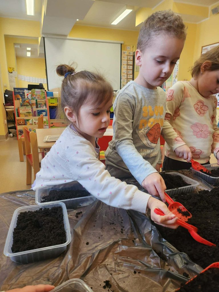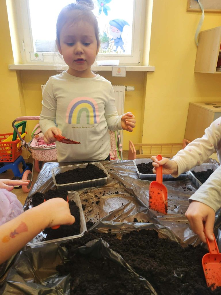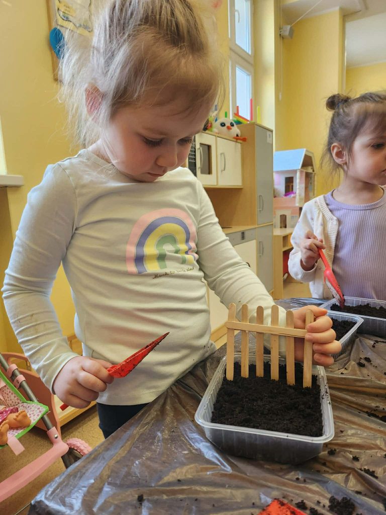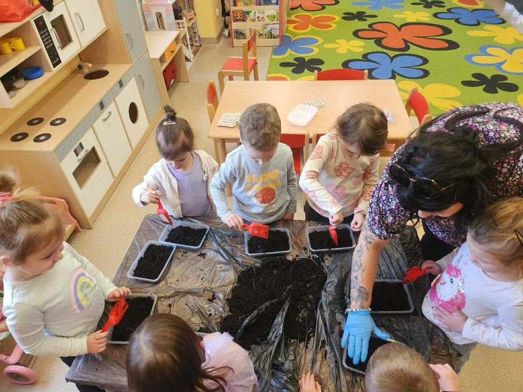 Dnia 19.03.2026r. Przedszkolaki samodzielnie zasiały rzeżuchę, która zajęła miejsce na naszych parapetach, tworząc piękny kącik przyrody w sali. Przez cały tydzień dzieci z troską podlewały swoje roślinki i uważnie obserwowały, jak kiełkują i rosną.Podczas zajęć przedszkolaki uczyły się odpowiedzialności i samodzielności, poznawały tajniki przyrody oraz proces wzrostu roślin. Dzięki codziennej pielęgnacji rozwijały spostrzegawczość i wrażliwość na przyrodę, ucząc się, jak dbać o otaczający je świat.