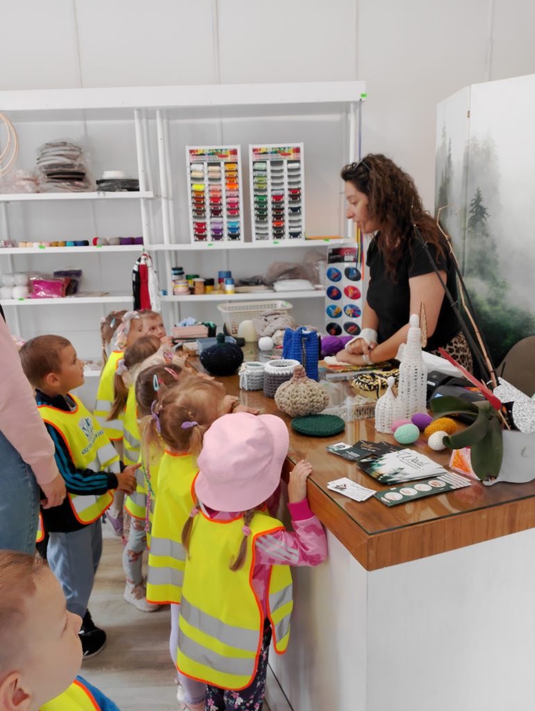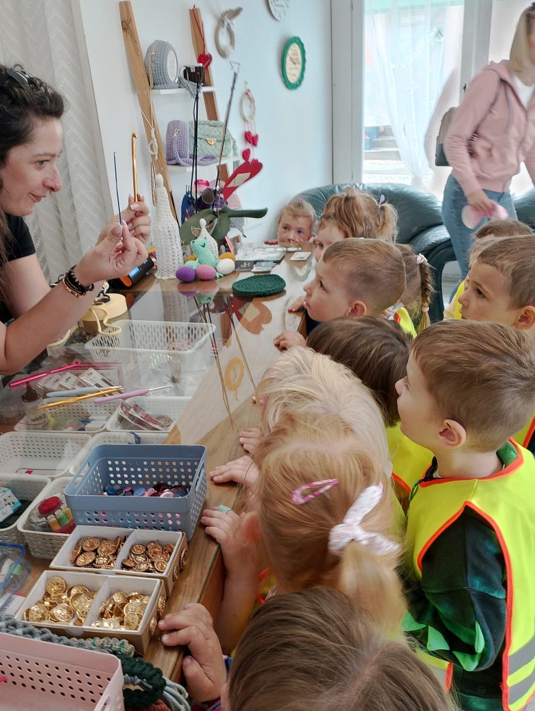Biedronki w pasmanterii „Woal” Cofnij Biedroneczki odwiedziły Panią Kasię w pasmanterii ” Woal”, która opowiedziała im o swojej pasji. Pokazała dzieciom co można zrobić na szydełku.