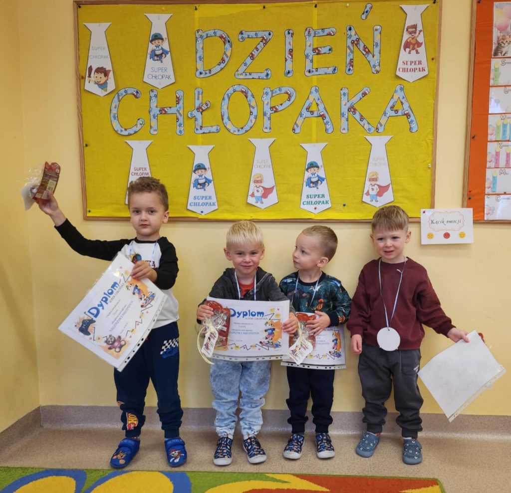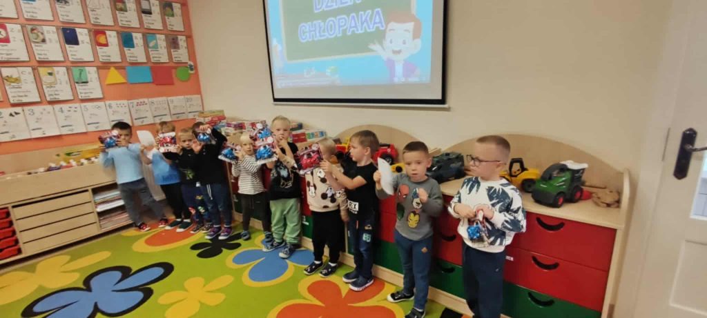 Z okazji Dnia Chłopaka w naszym przedszkolu panowała radosna atmosfera. Chłopcy otrzymali drobne upominki i życzenia od swoich koleżanek oraz pań nauczycielek. Nie zabrakło wspólnych zabaw, tańców i słodkiego poczęstunku. To był wyjątkowy dzień, pełen uśmiechów i miłych niespodzianek, który na długo pozostanie w pamięci dzieci.