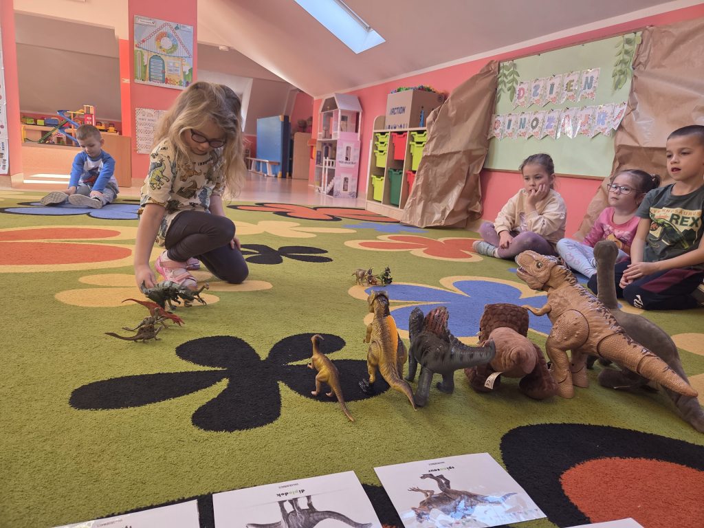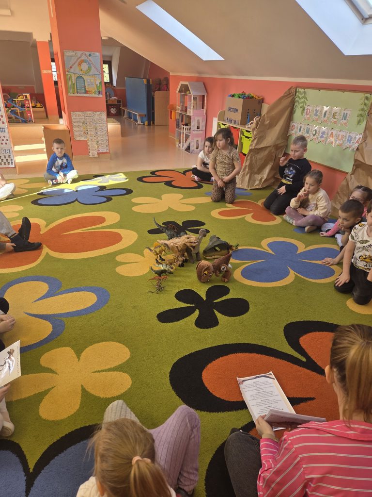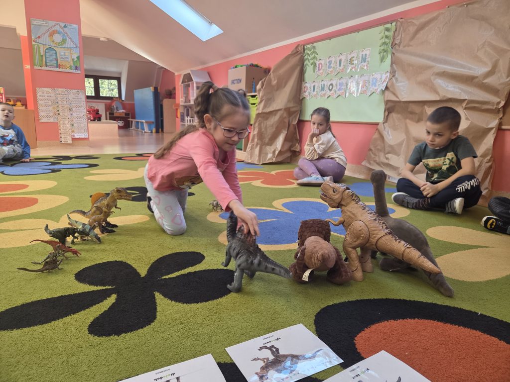 W grupie Pszczółki dzieci świętowały Dzień Dinozaura, który dostarczył im wielu radości i nowych wiadomości o tych fascynujących prehistorycznych zwierzętach. Podczas zajęć przedszkolaki poznały różne gatunki dinozaurów, dowiedziały się jak żyły, czym się żywiły oraz dlaczego wyginęły. Dzieci oglądały ilustracje i książki o dinozaurach. Nie zabrakło również zabaw ruchowych, tematycznych zagadek oraz wspólnych aktywności, które rozwijały wyobraźnię i kreatywność dzieci. Przedszkolaki z dużym zaangażowaniem uczestniczyły także w pracy plastycznej związanej z dinozaurami. 🦕