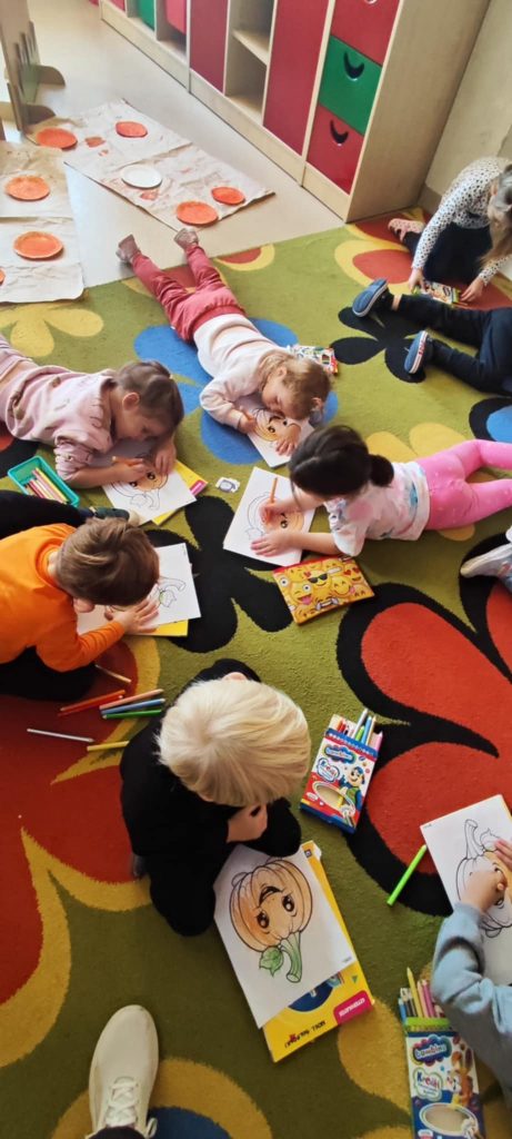 Dzień Dyni w Smerfach Cofnij Dzień Dyni w grupie Smerfów upłynął w radosnej,pomarańczowej atmosferze. Dzieci z dużym zaangażowaniem uczestniczyły we wszystkich aktywnościach, poznając nowe wiadomości i ciekawostki o tej niezwykłej jesiennej roślinie.