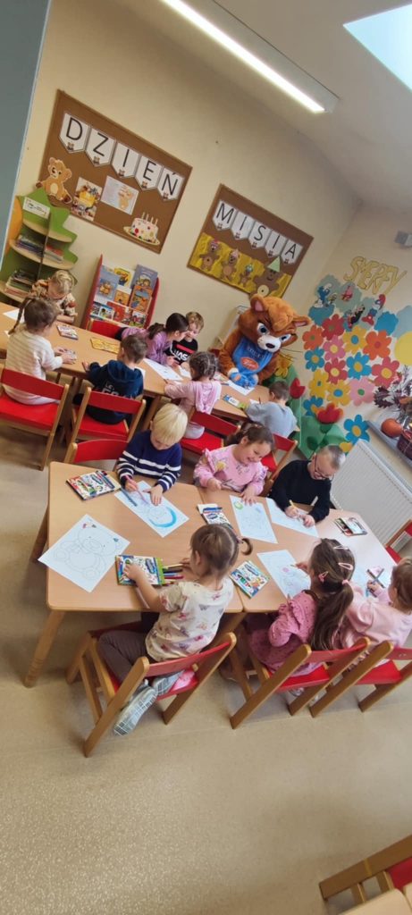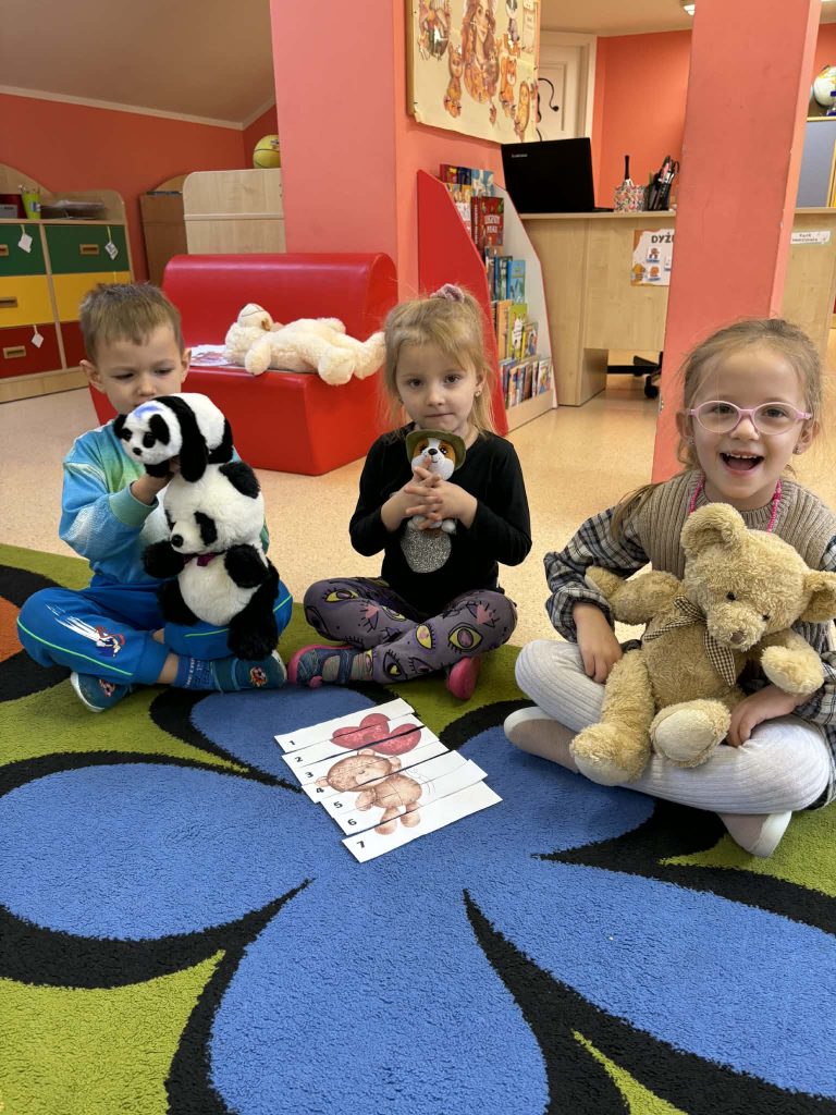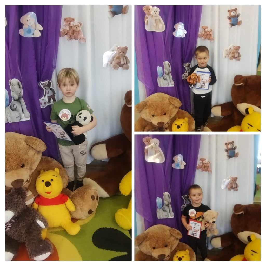 We wtorek w przedszkolu świętowaliśmy radosny Dzień Misia! Podczas zajęć dzieci poznały krótką historię pluszowego misia i dowiedziały się, jak stał się jedną z najbardziej ukochanych zabawek najmłodszych. Nie zabrakło również wesołych tańców, misiowych zabaw oraz prac plastycznych, w których to właśnie miś odgrywał główną rolę. Wielką niespodzianką, była wizyta dużego misia, która wywołała wśród dzieci mnóstwo radości. To był piękny i pełen uśmiechów dzień w przedszkolu!