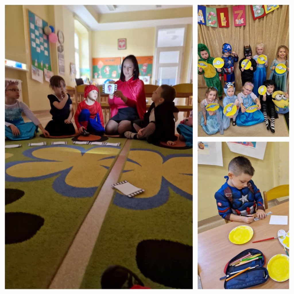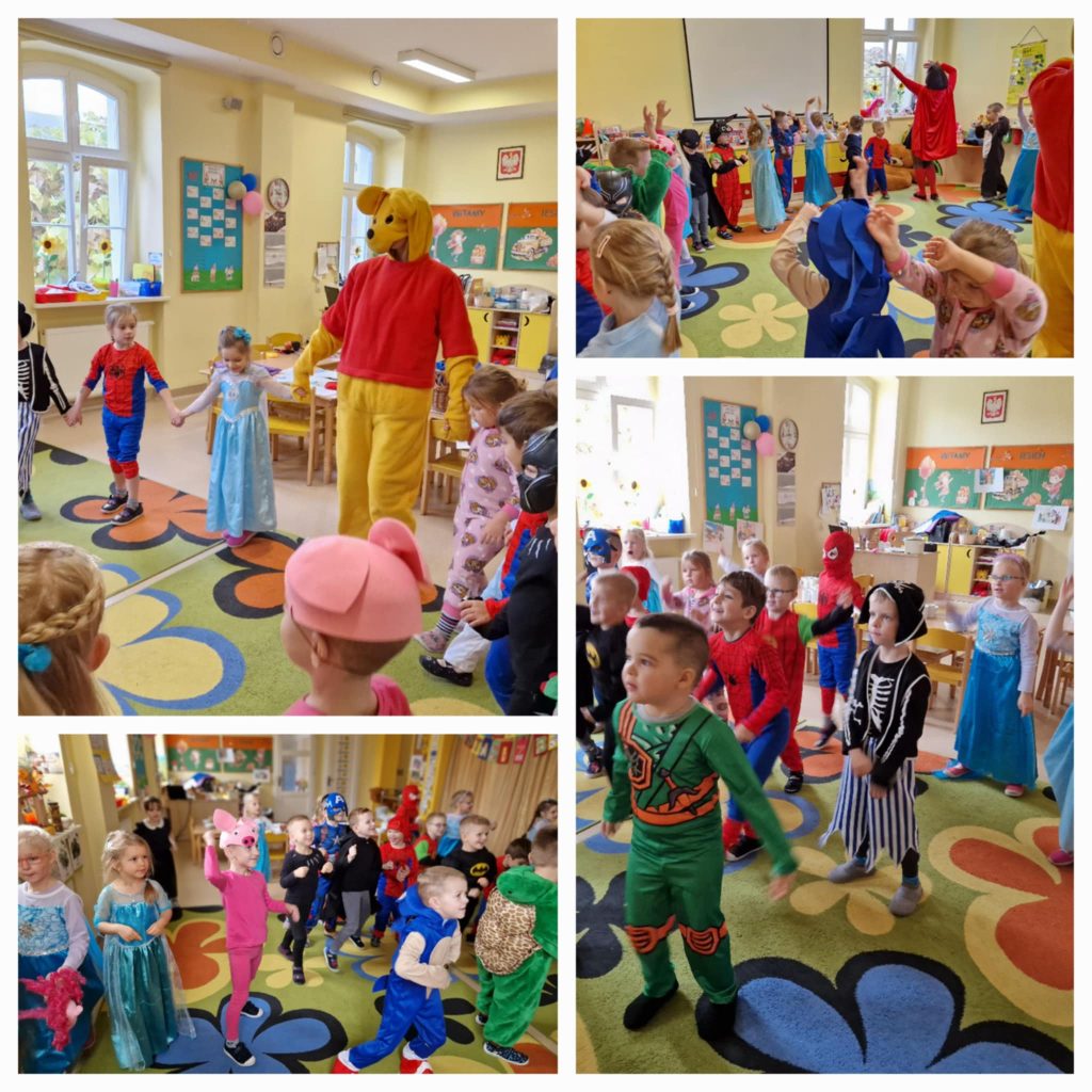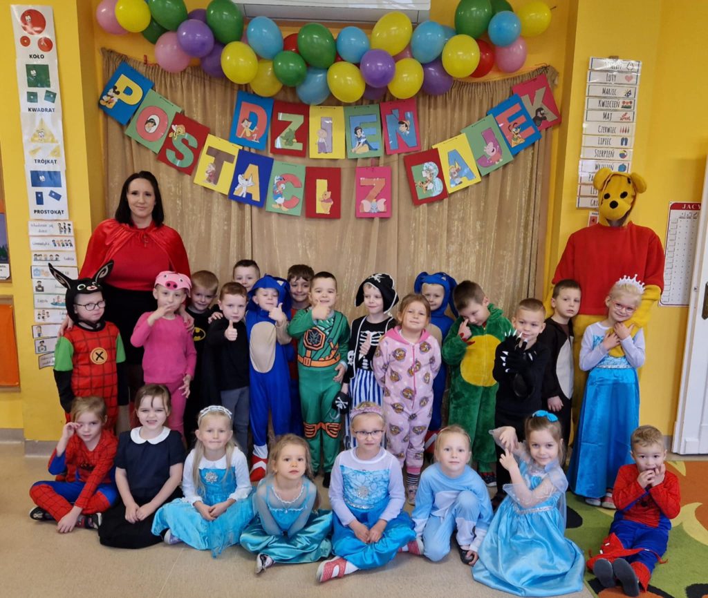Dzieci z grupy Krasnale świętowały Dzień Postaci z Bajek i na chwilę same zamieniły się w swoich ulubionych bohaterów. Nie zabrakło zagadek związanych z tematem dnia oraz zabaw taneczno-ruchowych z Kubusiem Puchatkiem , który odwiedził dzieci w ciągu dnia.