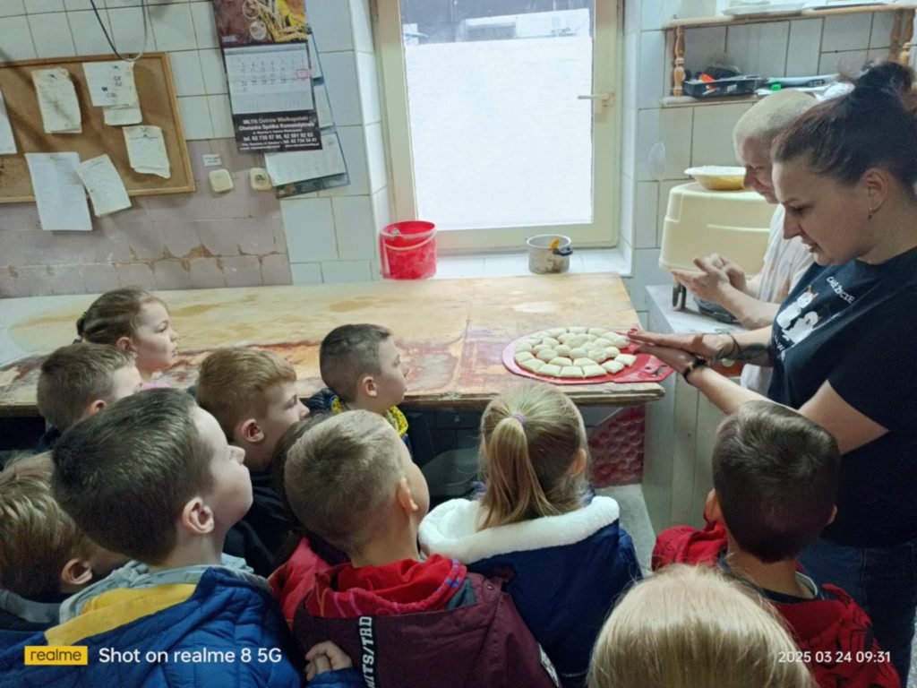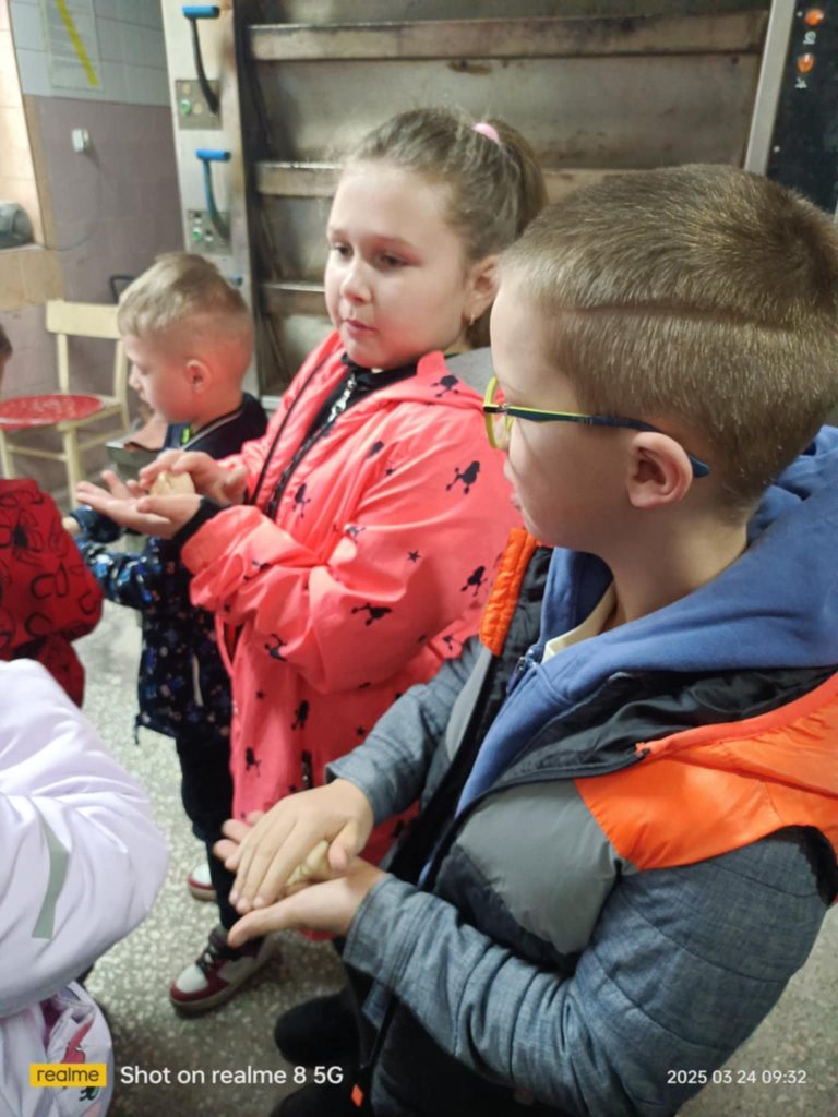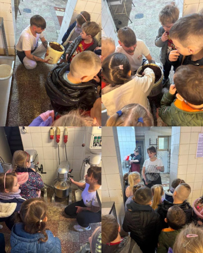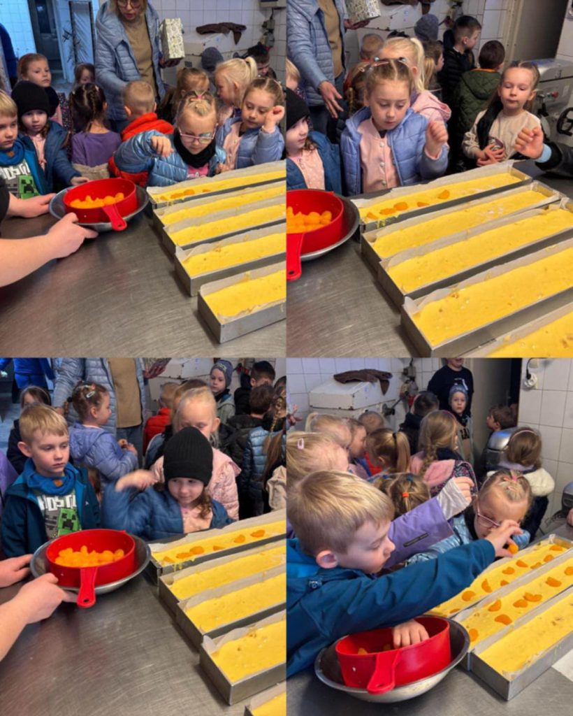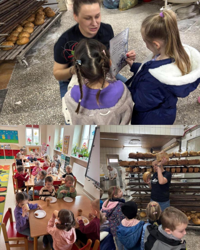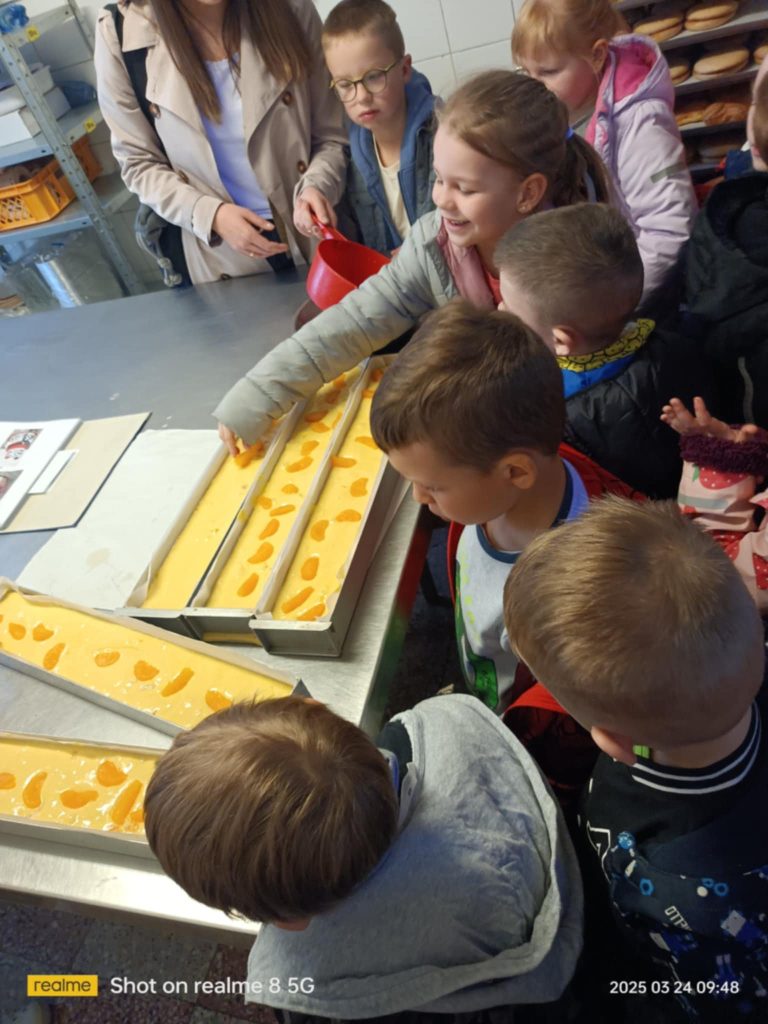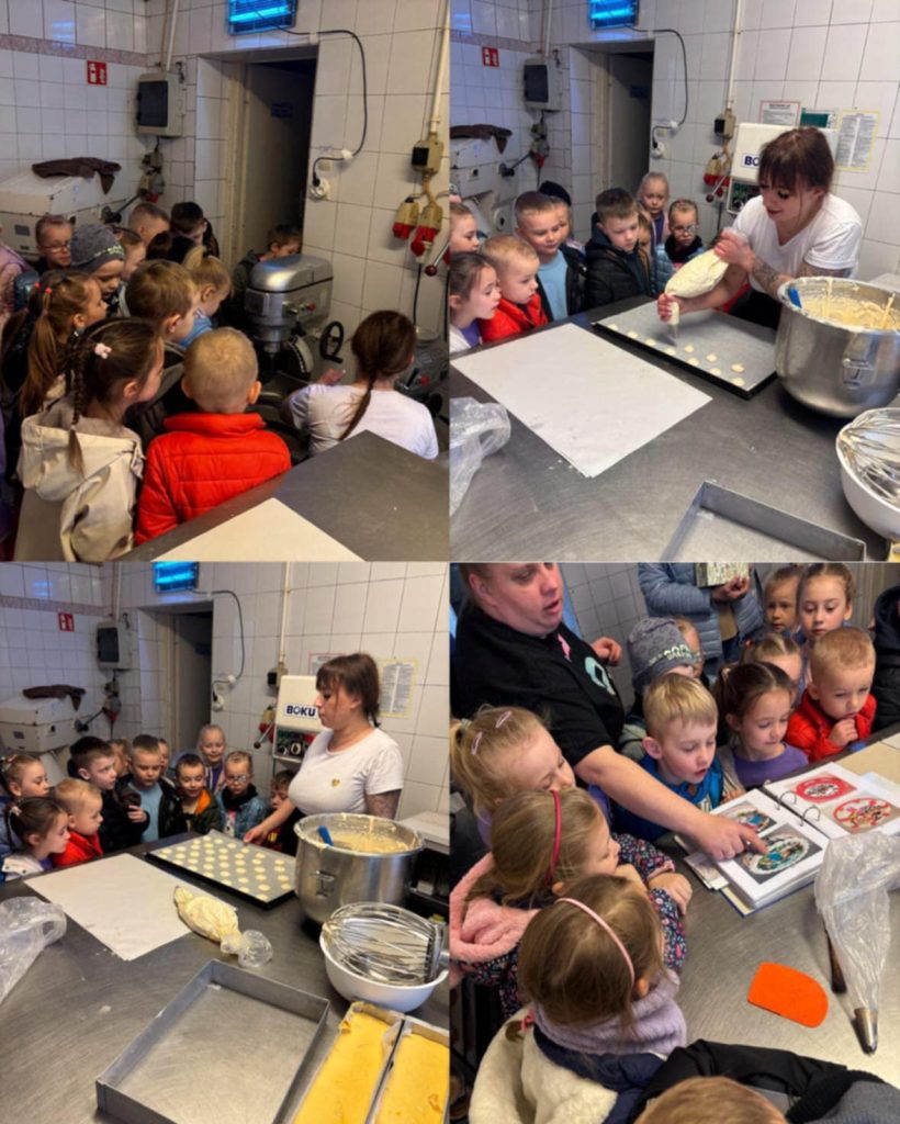 W poniedziałek, 24 marca dzieci z grupy Kotki i Muminki odwiedziły piekarnię i cukiernię „Hubcio” w Bojanowie. Podczas wizyty przedszkolaki miały okazję zobaczyć, jak powstaje chleb, bułki i różne słodkie wypieki. Piekarze opowiedzieli o swojej pracy, pokazali wielkie piece i wyrabianie ciasta. Dzieci z zaciekawieniem obserwowały proces dekorowania ciastek. Na zakończenie każde dziecko otrzymało słodki poczęstunek. Wizyta była bardzo interesująca.