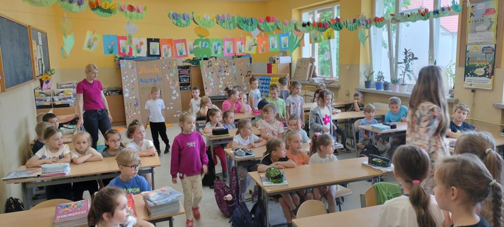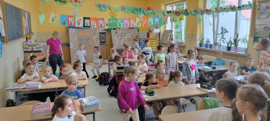 Kotki i Zajączki z wizytą w Szkole Podstawowej. Cofnij Już niedługo dzieci rozpoczną kolejny etap edukacyjny. Dziękujemy przyszłym wychowawczyniom za możliwość odwiedzenia szkoły i pokazanie budynku szkoły, klas. Dzieci z pewnością od września, z radością ruszą do szkoły 😀