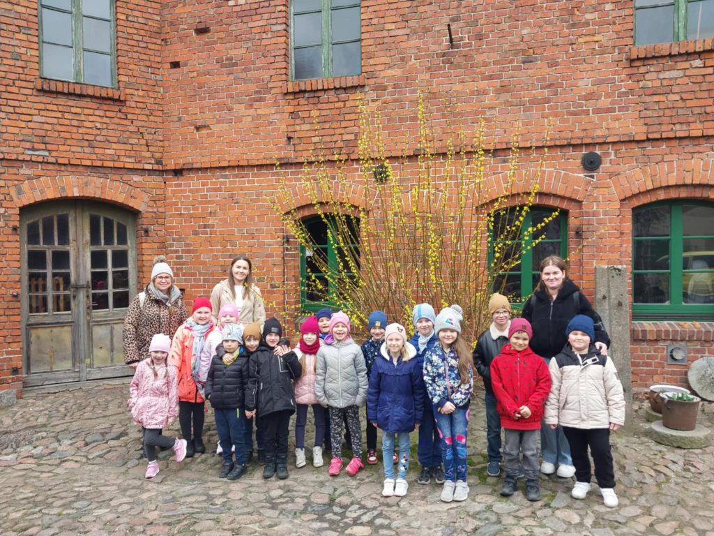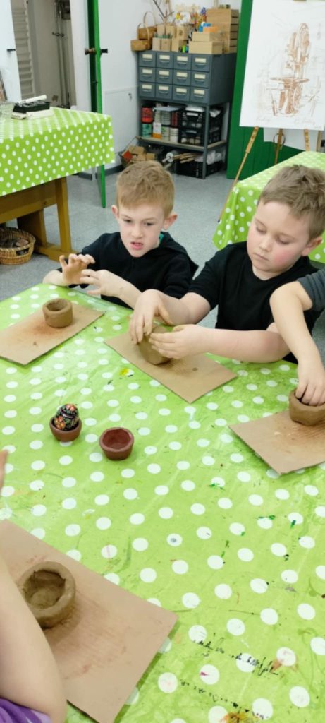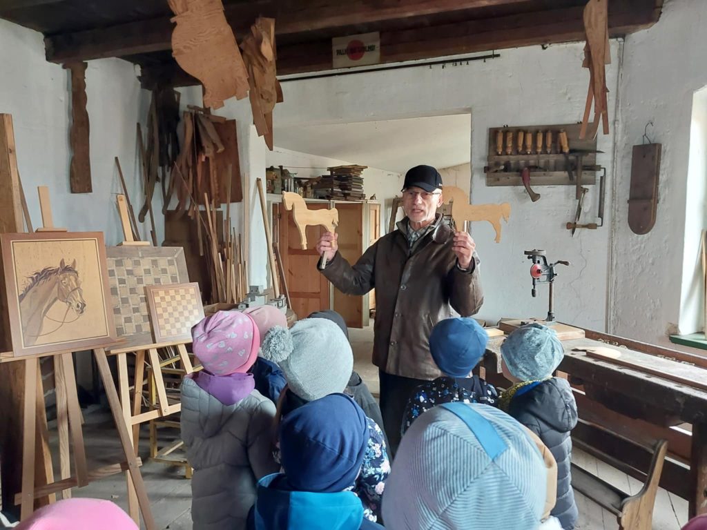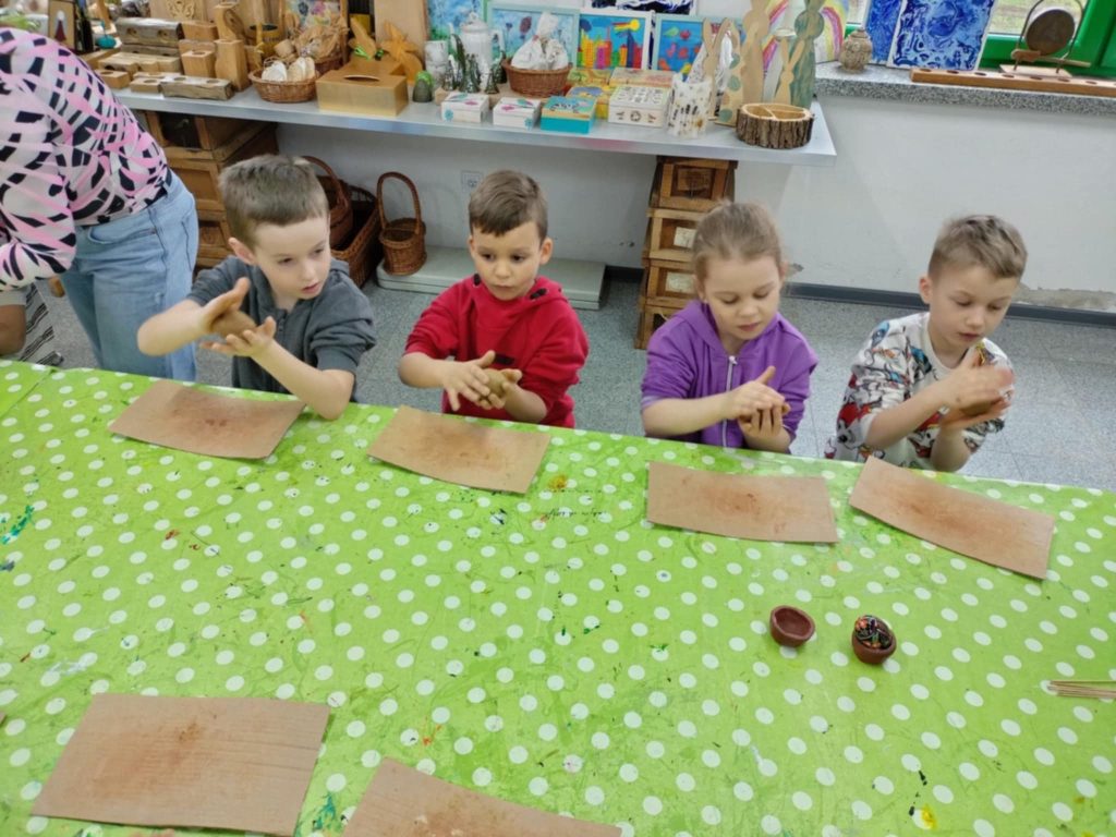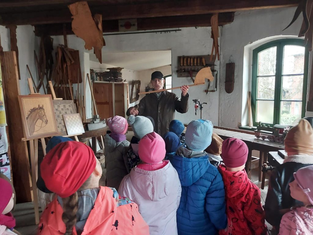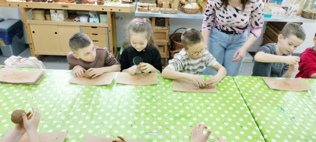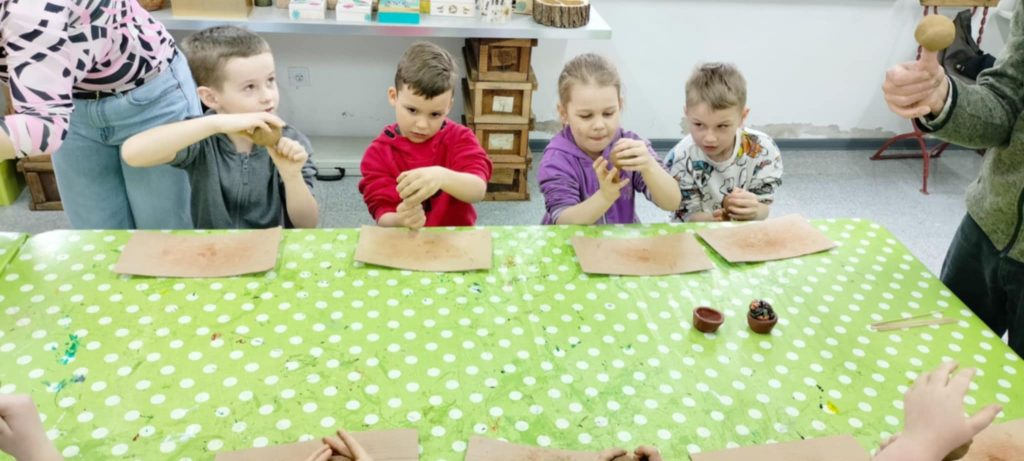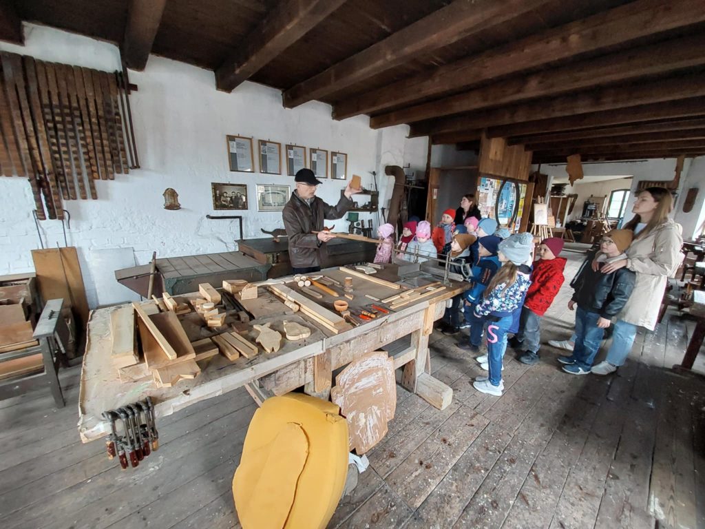 W czwartek 27 marca Kotki pojechały do Muzeum do Krobi. Poznaliśmy w ten dzień historie rzemiosła stolarskiego oraz zawód stolarza. Zapoznaliśmy się z maszynami i obróbką drewna używanego do wyrobu mebli i zabawek. Zobaczyliśmy wiele ciekawych starych przyrządów używanych kiedyś np. żelazko na węgiel oraz magiel. Pan przewodnik zapoznał nas z kulturą Biskupizny i pokazał charakterystyczne stroje, które były popularne w tej okolicy. Punktem przewodnim naszej wycieczki do muzeum były warsztaty ceramiczne. Każdy z nas dostał kulkę gliny i wykonał samodzielnie z niej naczynie do jajka wielkanocnego. Ten dzień był dla nas bardzo ciekawy, a wyjazd sprawił nam wielką radość.
