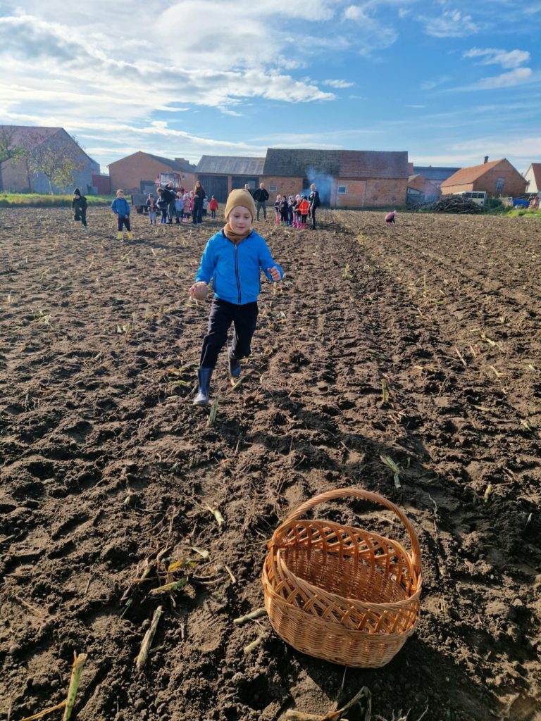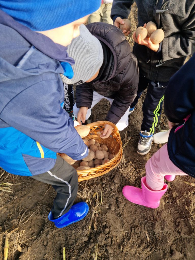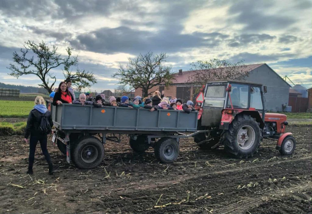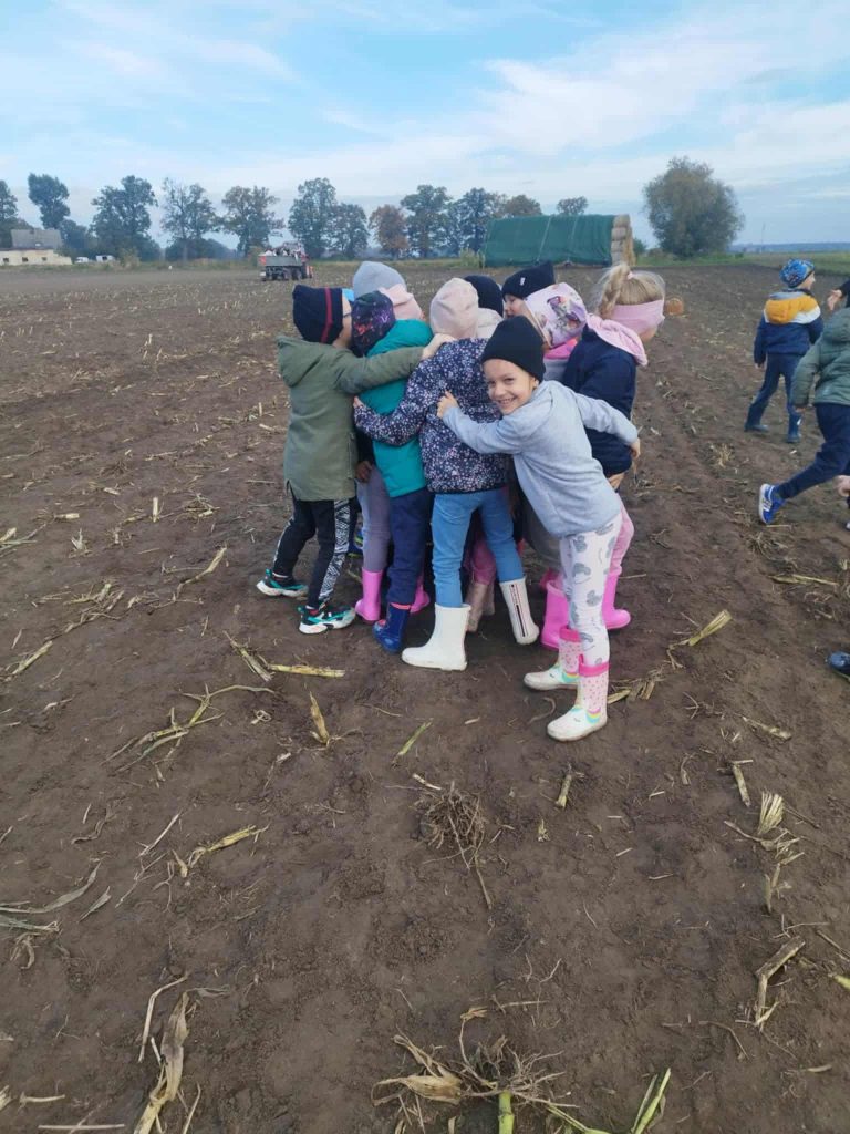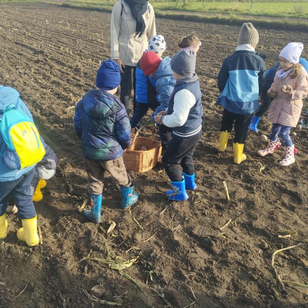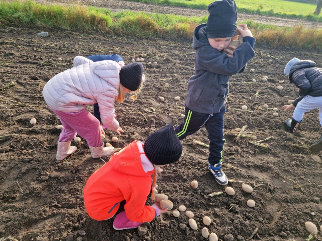 Pod koniec października dzieci z grup Krasnale i Żabki wybrały się do Sowin na Święto Pieczonego Ziemniaka, zorganizowane dzięki gościnności rodziców Julki z grupy Żabek. Podczas wspólnej zabawy czekało na dzieci wiele atrakcji — konkurencje sportowe, zbieranie ziemniaków do koszy oraz przejażdżka na przyczepie. Nie zabrakło też pysznego jedzenia: ziemniaków z ogniska, kiełbasek, ciasta oraz przekąsek przygotowanych z ziemniaków. To był radosny i pełen wrażeń dzień spędzony w miłej, jesiennej atmosferze.