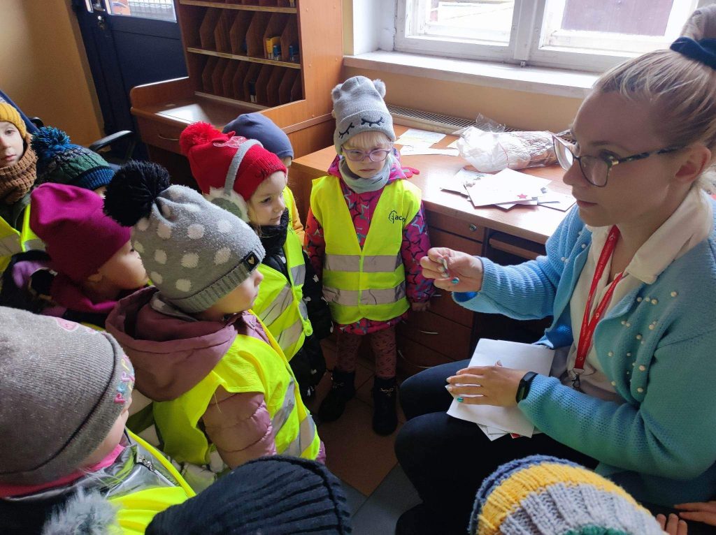 Krasnale na poczcie Cofnij Dziś Krasnale udały się na pocztę by wysyłać listy do gwiazdora. Przy tej okazji dzieci zwiedziły całą pocztę i dowiedziały się jaką drogę musi pokonać list od nadawcy do adresata.
