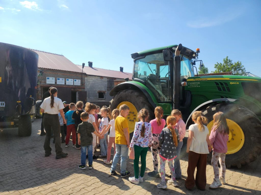 Kubusie poznają życie na farmie Cofnij Dzieci z grupy Kubusie odwiedziły gospodarstwo państwa Polaszyk mogły zobaczyć duże rolnicze maszyny oraz hodowle bydła ( byki) Atrakcją nie było kończą świetne spędzony czas