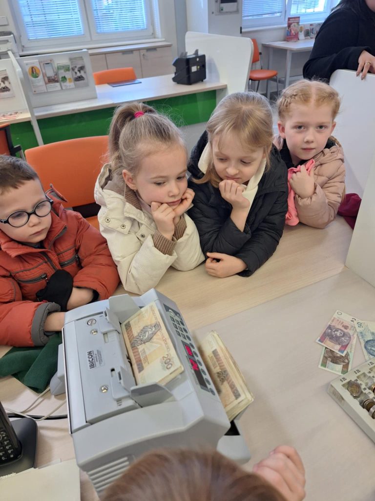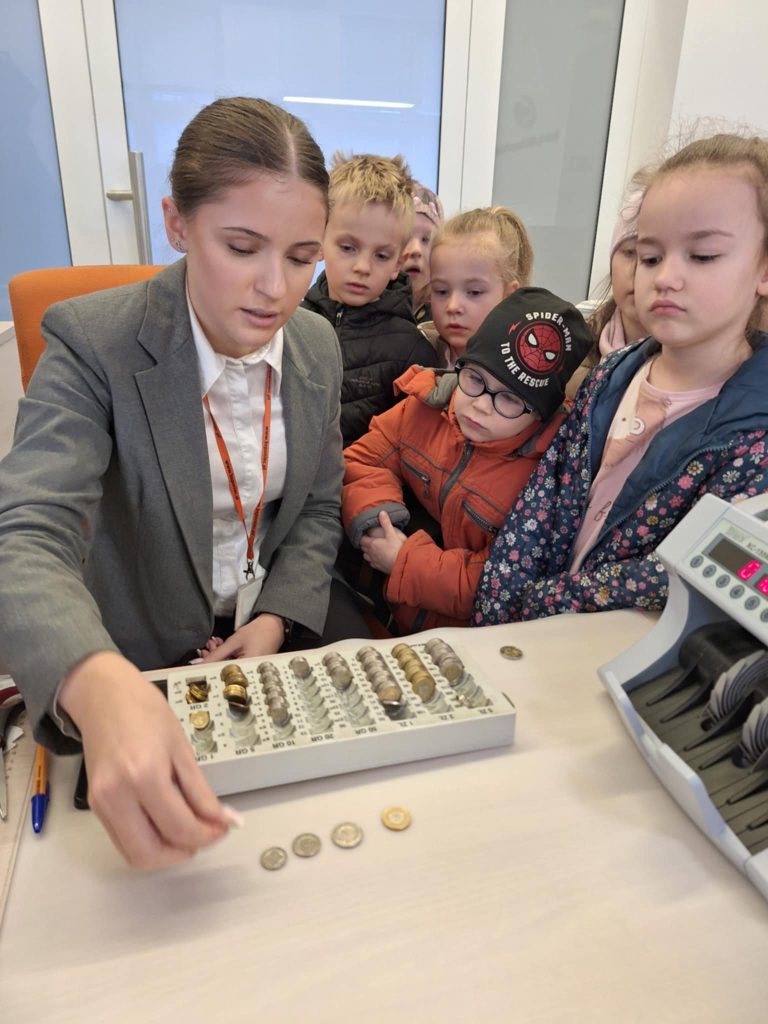 Kubusie odwiedziły Bank Spółdzielczy w Poniecu, by dowiedzieć się, jak działa bank i dlaczego oszczędzanie jest ważne. Dzieci miały okazję zobaczyć, jak wygląda praca w banku „od środka”, poznały różne rodzaje pieniędzy oraz nauczyły się, czym jest konto bankowe. Pracownicy banku przyjęli Kubusiów bardzo serdecznie i opowiedzieli o codziennych obowiązkach. Na koniec wizyty każde dziecko otrzymało drobny upominek. Wycieczka była ciekawą i pouczającą lekcją finansów dla najmłodszych.