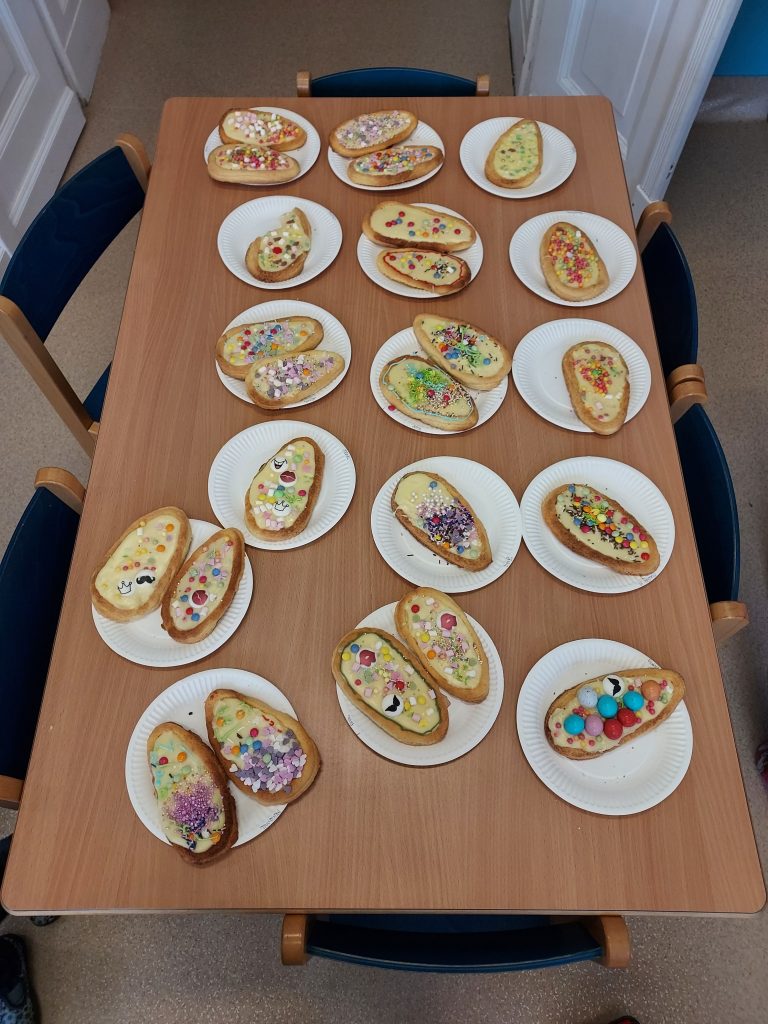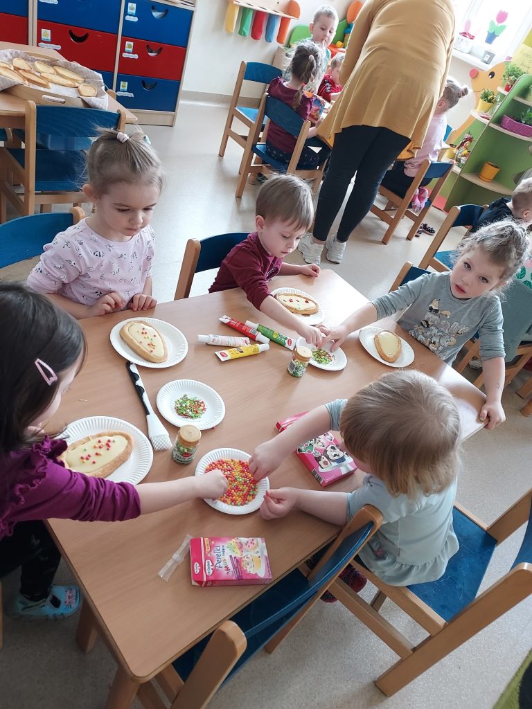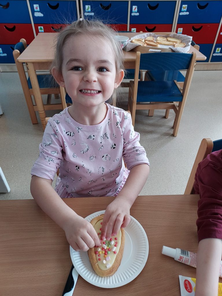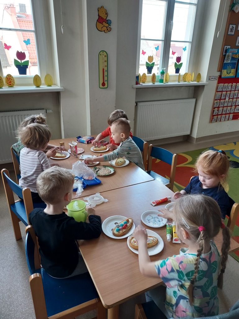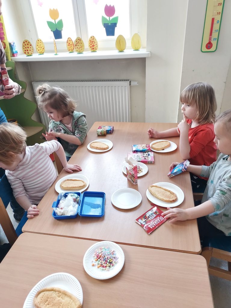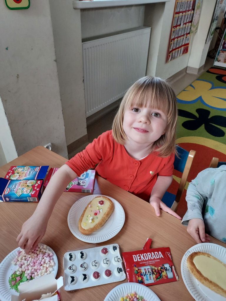 Dzieci z grupy Kubusie miały za zadanie ozdobić piękne mazurki wielkanocne, które upiekła dla nas mama Ksawcia. W dzisiejszych warsztatach pomagała nam mama Filipka, która przygotowała nam lukier. Była to dla nas świetna zabawa. Mamie Ksawcia i mamie Filipka bardzo dziękujemy.