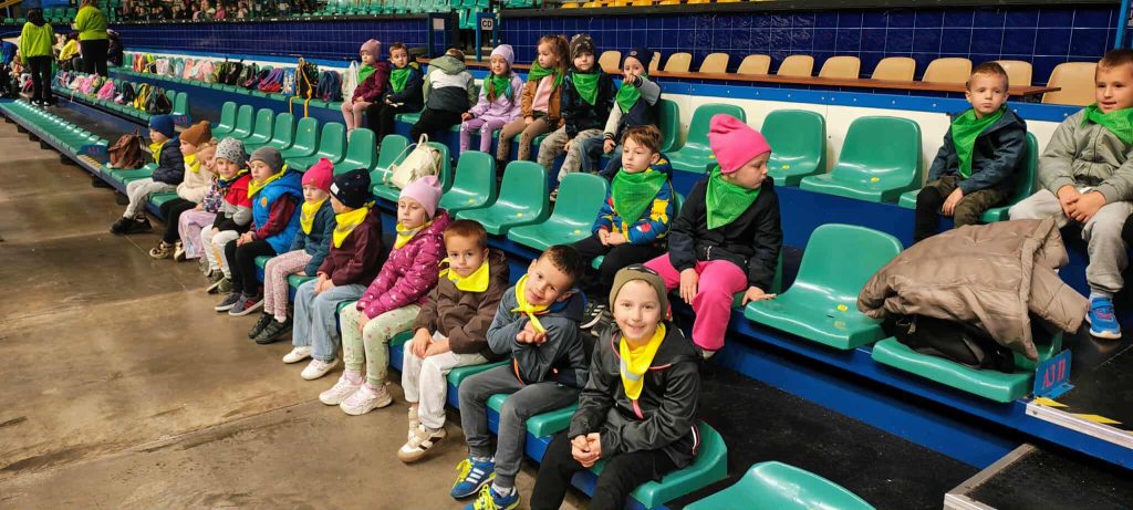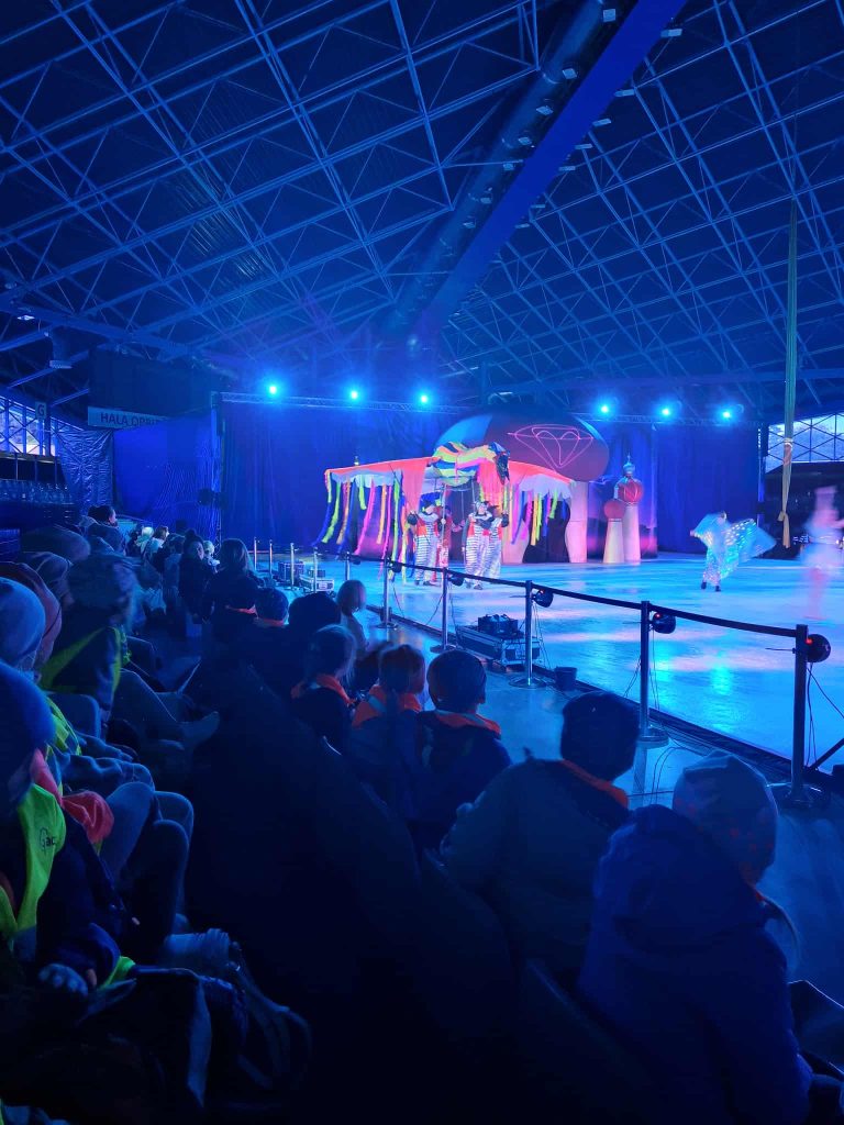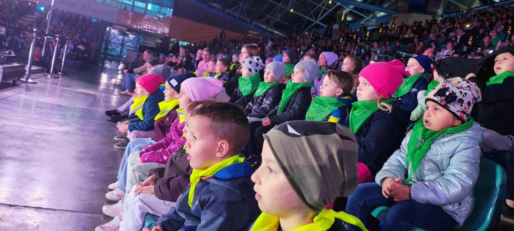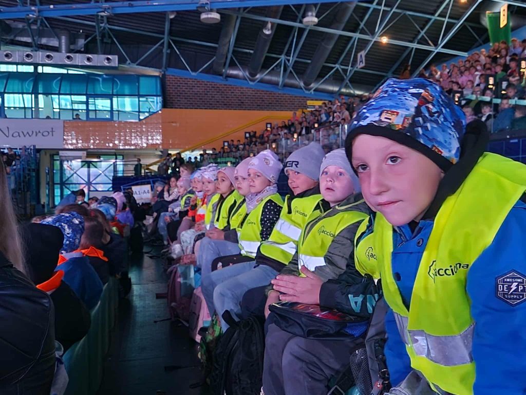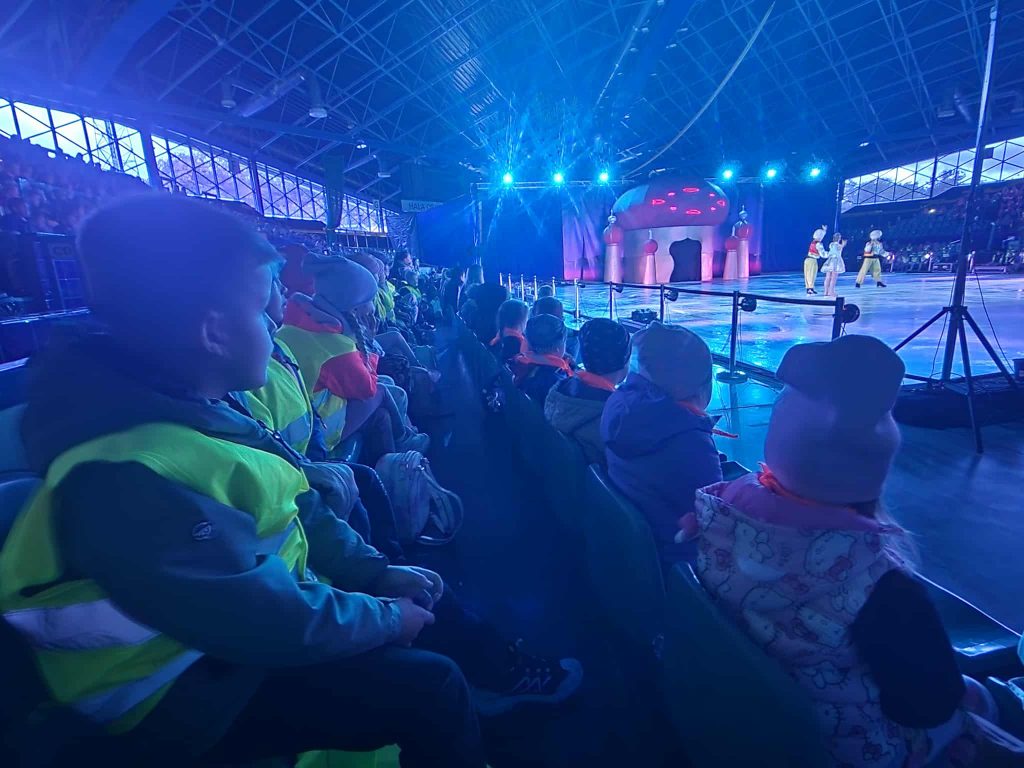 Dziś dzieci z grup: Motylki, Żabki, Muminki oraz Krasnale były na wyjątkowym widowisku łyżwiarskim – Rewii na lodzie we Wrocławiu. Spektakl odbył się w Hali Orbita, gdzie dzieci miały okazję podziwiać połączenie tańca na lodzie, efektów świetlnych i bajkowej oprawy. Wyjazd na Rewię był nie tylko kulturalnym przeżyciem, ale też okazją do obserwacji jakich umiejętności wymaga łyżwiarstwo.