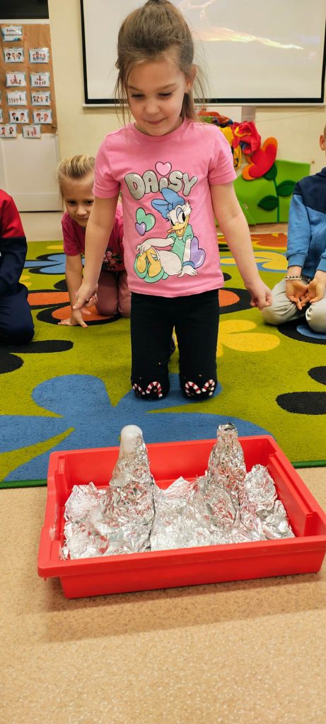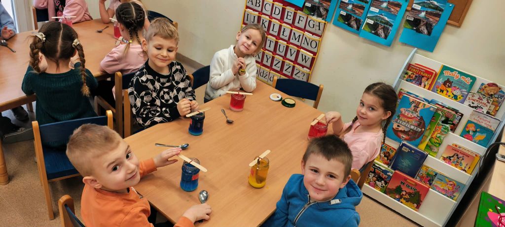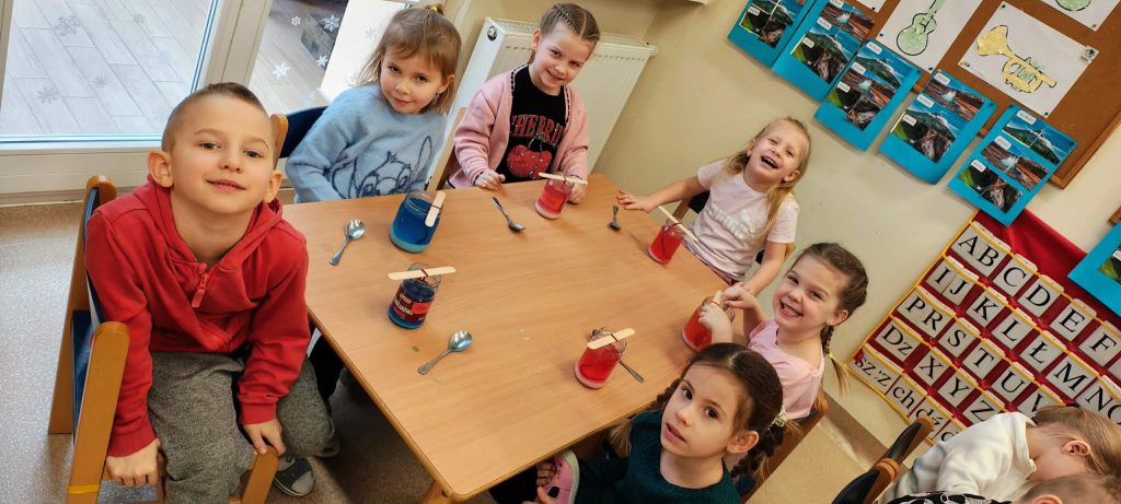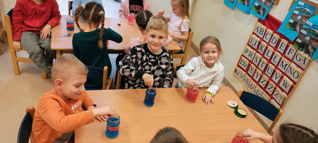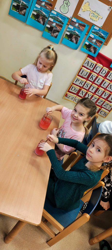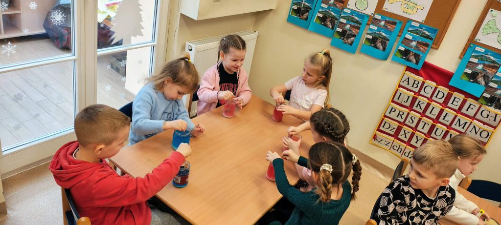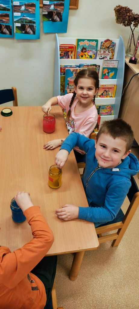 W minionym tygodniu dzieci z grupy Motylki realizowały temat „Pod ziemią, pod wodą”. Poznawały, co znajduje się pod powierzchnią ziemi i jakie skarby są tam ukryte oraz w głębinach wodnych. Dzieci z dużym zainteresowaniem brały udział w zajęciach badawczych – samodzielnie wykonały kryształki z soli, obserwując zachodzące zmiany. Na zakończenie tygodnia uczestniczyły w efektownym doświadczeniu przedstawiającym wybuch wulkanu, które było podsumowaniem zdobytej wiedzy o tym, co kryje się pod ziemią.