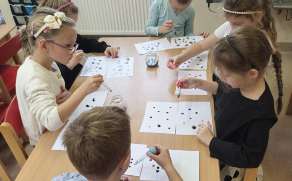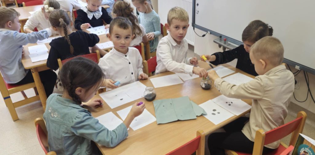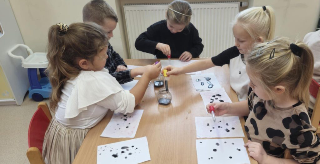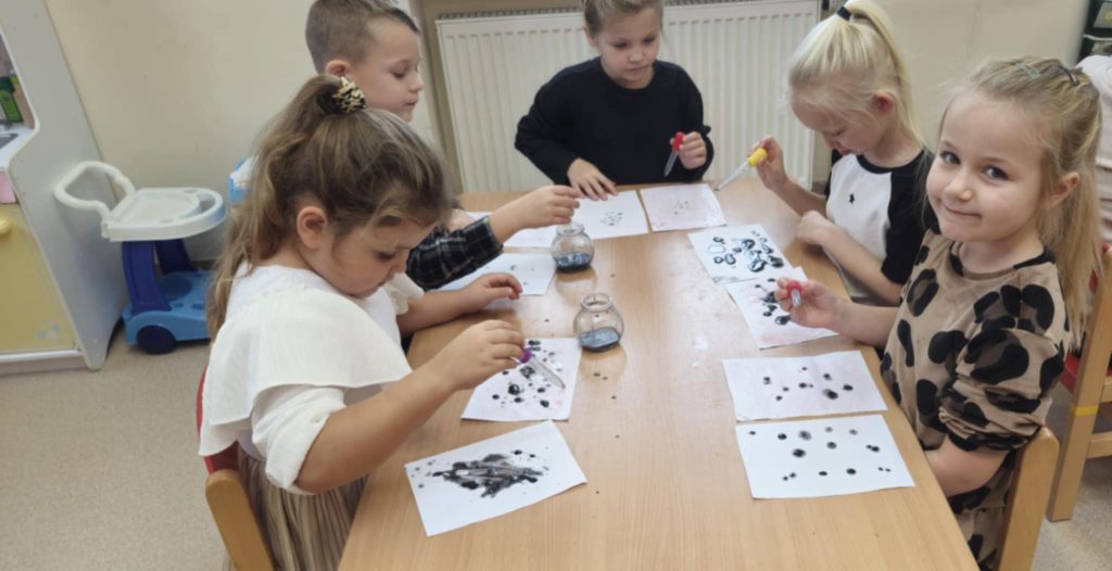 W ramach programu „Mali Wielcy Odkrywcy” Muminki brały udział w kolejnych ciekawych zajęciach badawczych. Tym razem tematem była ropa naftowa – jej właściwości, pochodzenie oraz zastosowanie w życiu codziennym. Podczas zajęć dzieci dowiedziały się, skąd pochodzi ropa, jak wygląda oraz do czego może być wykorzystywana. Dzieci miały także okazję sprawdzić, jak ropa zachowuje się w kontakcie z wodą i dlaczego nie miesza się z nią, co wzbudziło ogromną ciekawość i chęć eksperymentowania.