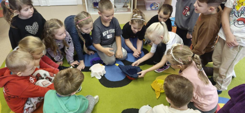 W Muminkach odbyły się zajęcia w ramach programu „Mali Wielcy Odkrywcy”, podczas których dzieci zamieniły się w prawdziwych badaczy i eksperymentatorów. Tym razem tematem były tkaniny – ich rodzaje, zastosowanie i właściwości. Podczas zajęć przedszkolaki mogły dotykać, oglądać i porównywać różne materiały. Nie zabrakło także prostych eksperymentów – dzieci testowały, które tkaniny lepiej chłoną wodę, a które ją odpychają. Zajęcia były świetną okazją do rozwijania ciekawości, poszerzania wiedzy o świecie oraz kształtowania umiejętności badawczych.