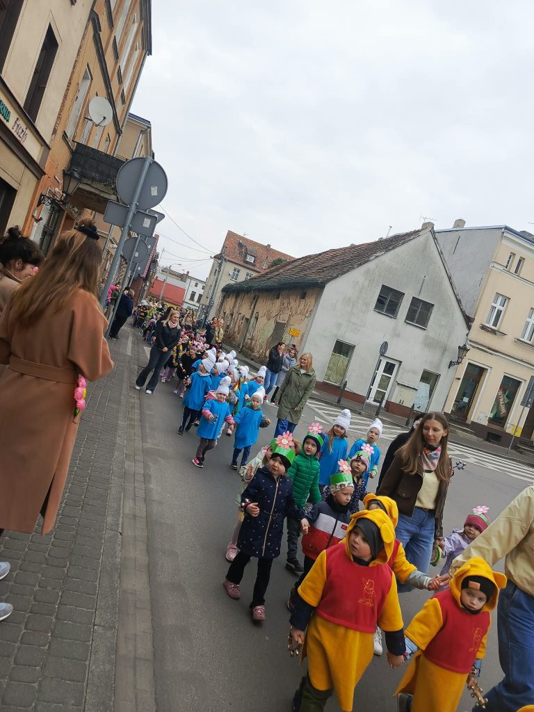 Przedszkolaki radośnie powitały nadejście wiosny, biorąc udział w przemarszu ulicami miasta. Podczas spaceru dzieci grały na instrumentach oraz śpiewały piosenki i z uśmiechem na twarzach witały przechodniów, dzieląc się swoją radością. Wydarzenie miało na celu nie tylko uczczenie pierwszych dni wiosny, ale także integrację dzieci oraz promowanie aktywnego spędzania czasu na świeżym powietrzu.