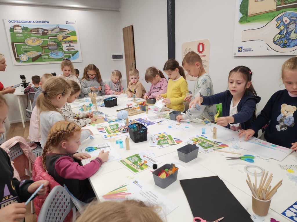 Nasze przedszkolaki miały okazję odwiedzić Wodociągi Leszczyńskie, gdzie czekało na nie mnóstwo ciekawostek! Zwiedziły muzeum, poznały historię dostarczania wody do domów, a także zobaczyły pod mikroskopem, co kryje się w kropli wody. Dzieci z zainteresowaniem słuchały opowieści i zadawały mnóstwo pytań. To była fascynująca lekcja o tym, skąd bierze się czysta woda i jak ważna jest dla naszego życia!