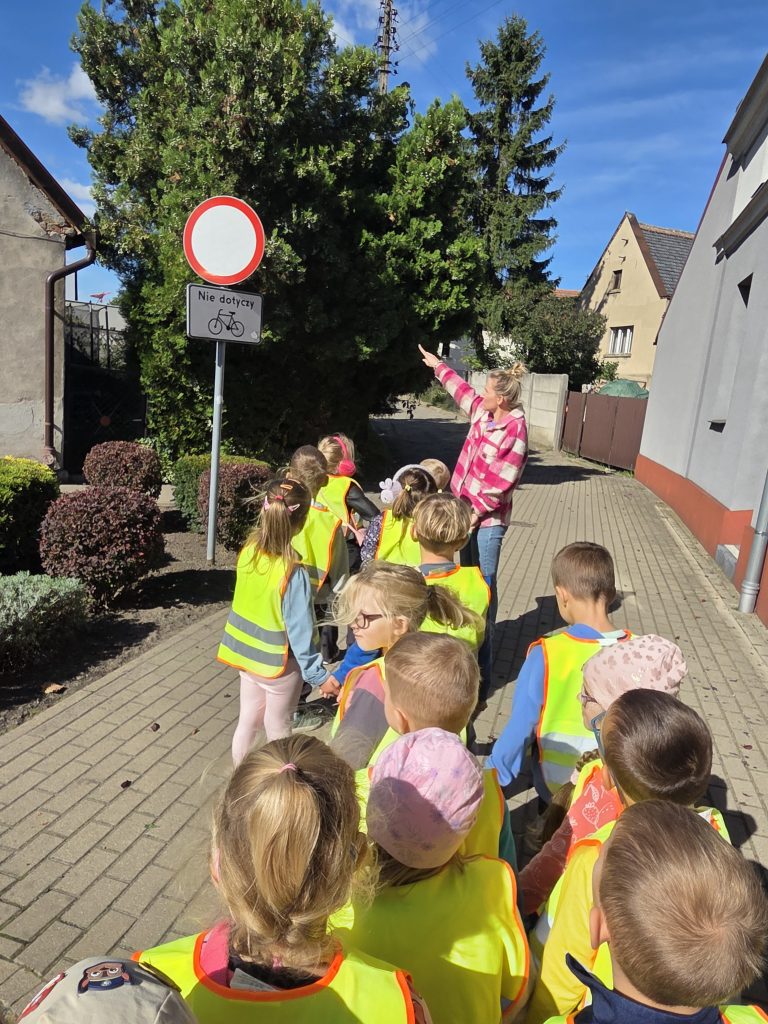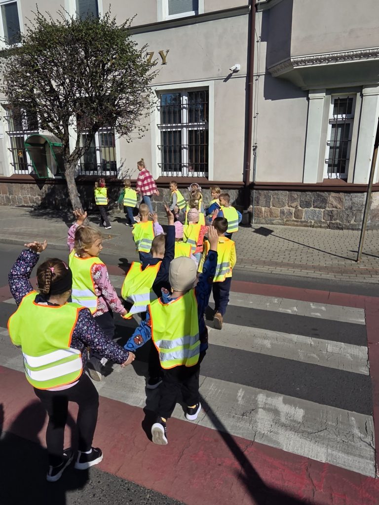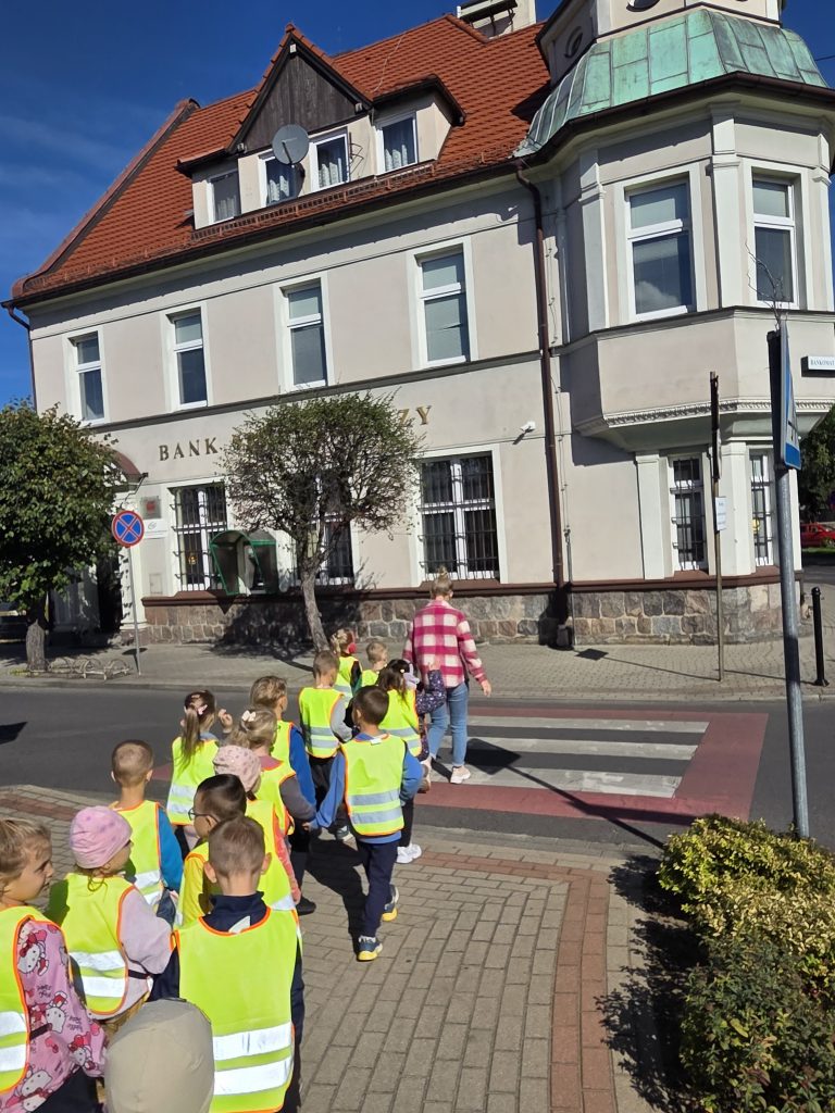 Pszczółki wybrały się na spacer, aby przypomnieć sobie jak być bezpiecznym na drodze. Razem oglądaliśmy znaki drogowe i ćwiczyliśmy przechodzenie przez pasy. Wszyscy świetnie pamiętali, że trzeba zatrzymać się, spojrzeć w lewo, w prawo i znów w lewo. Na koniec spaceru każdy przedszkolak musiał zaznaczyć na liście znaków te, które zauważył podczas spaceru.