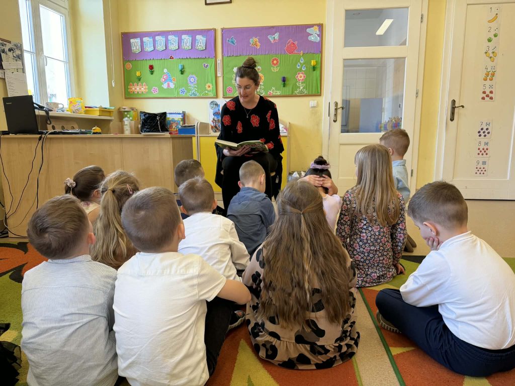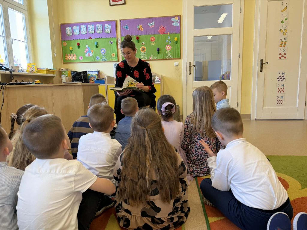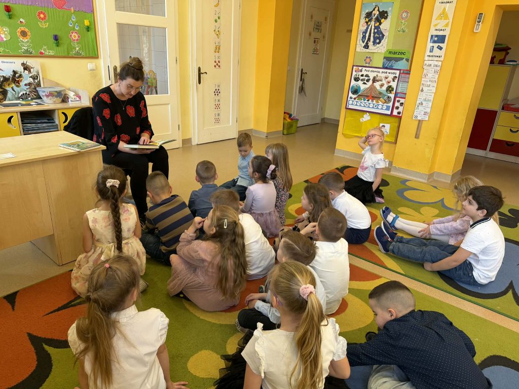 W piątek po obiedzie grupę Krasnali odwiedziła mama Grzesia, która przeczytała dzieciom bajkę o smolistym byczku. Spotkanie odbyło się w przyjaznej i ciepłej atmosferze. Dzieci z dużym zainteresowaniem słuchały opowiadania, aktywnie uczestniczyły w rozmowie o treści bajki i chętnie dzieliły się swoimi spostrzeżeniami. Serdecznie dziękujemy mamie Grzesia za poświęcony czas i zaangażowanie w życie grupy.