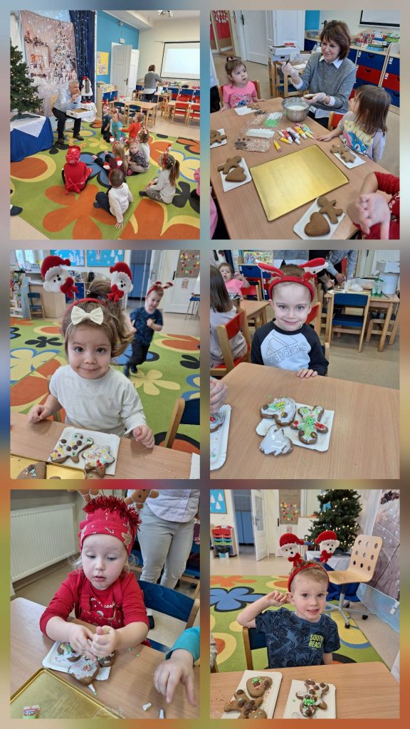 Słodki Piernikowy Czas w grupie Kubusie W pracowni zapach imbiru otulał wszystkich jak ciepły szal. Dziadkowie Leona, mistrzowie słodkiej roboty, poprowadzili grupy Kotki i Kubusie przez radosne ozdabianie pierników. Kolorowy lukier tańczył, cukrowe drobinki migotały, a dzieci tworzyły swoje małe, jadalne opowieści.I oczywiście, pamiętaliśmy o Krzysiu. Dla niego też powstały wyjątkowe pierniki, pełne serdeczności. 🎄🍪