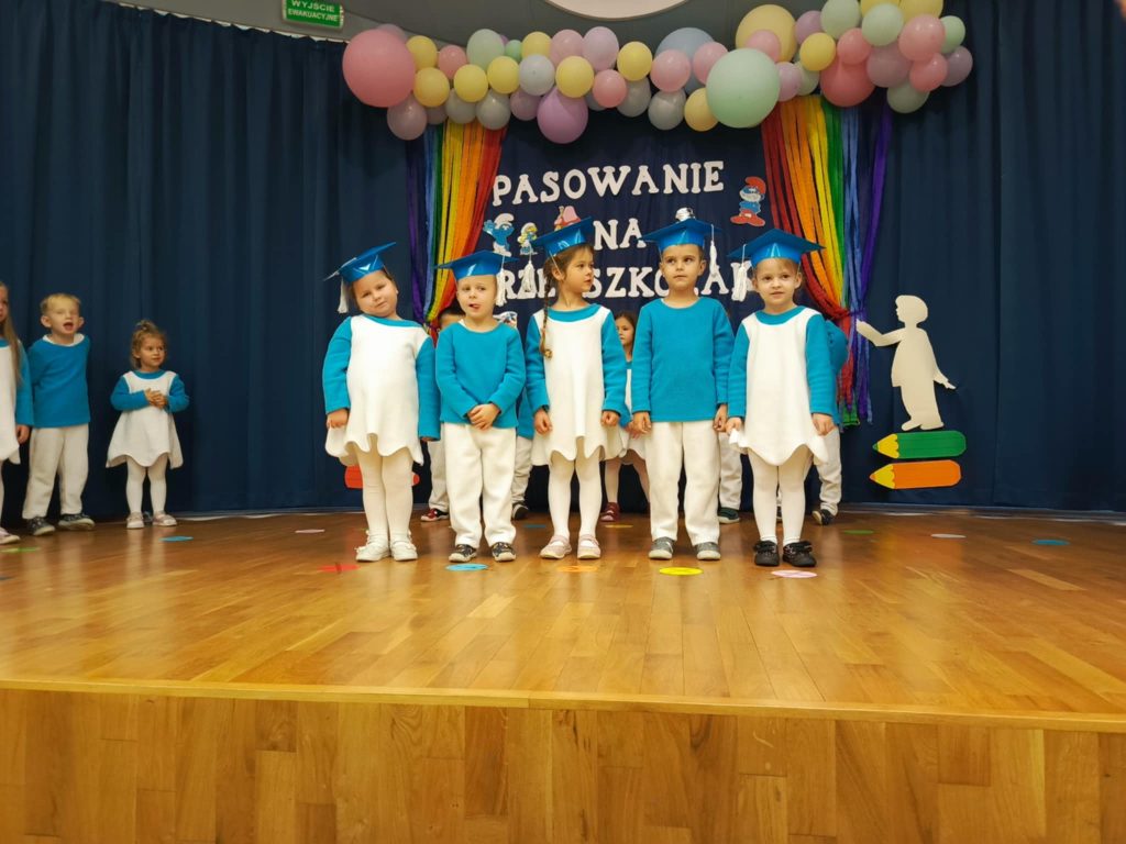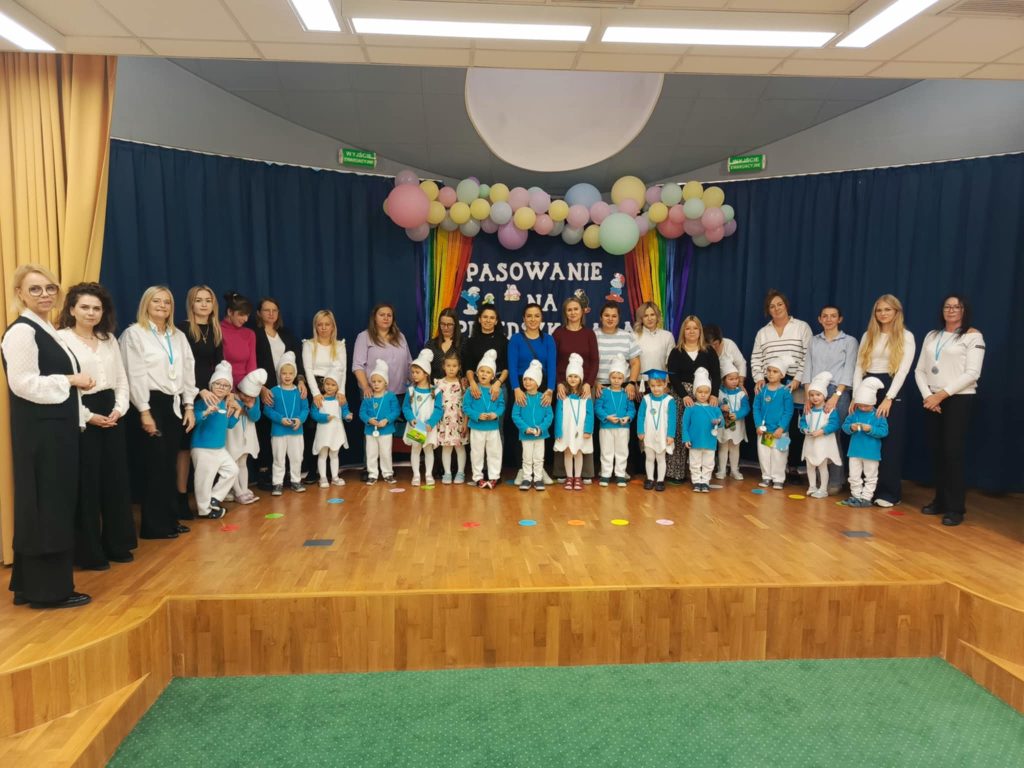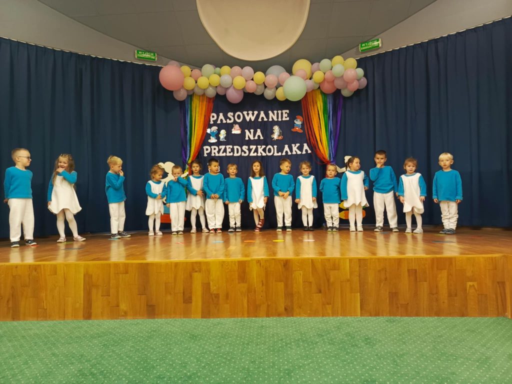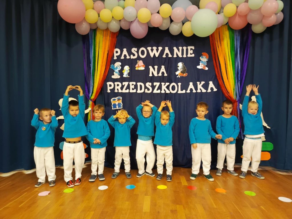 W auli przedszkolnej odbyła się wyjątkowa uroczystość – „Smerfne pasowanie Tego dnia sala zamieniła się w zaczarowaną wioskę Smerfów, pełną niebieskich postaci. Bohaterami wydarzenia były 4 – latki z grupy Smerfów Spotkanie rozpoczęło się powitaniem gości oraz programem artystycznym . Dzieci zaprezentowały piosenki, wierszyki i taniec inspirowany smerfowym światem. Następnie przedszkolaki złożyły uroczyste ślubowanie . Kulminacyjnym momentem wydarzenia było pasowanie na przedszkolaka, podczas którego 5 dzieci – Pelagia , Wiktor, Amelia, Igor i Iga zostały oficjalnie przyjęte do społeczności przedszkolnej. Wszystkie dzieci otrzymały smerfne medale . Dużo entuzjazmu i radości wywołał świecący smerfy tort . To był dzień pełen magicznych chwil, który na długo pozostanie w pamięci małych przedszkolaków i ich bliskich