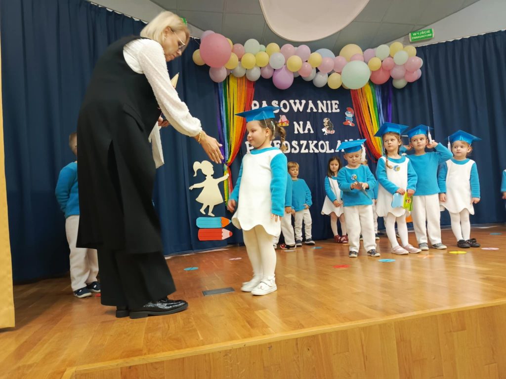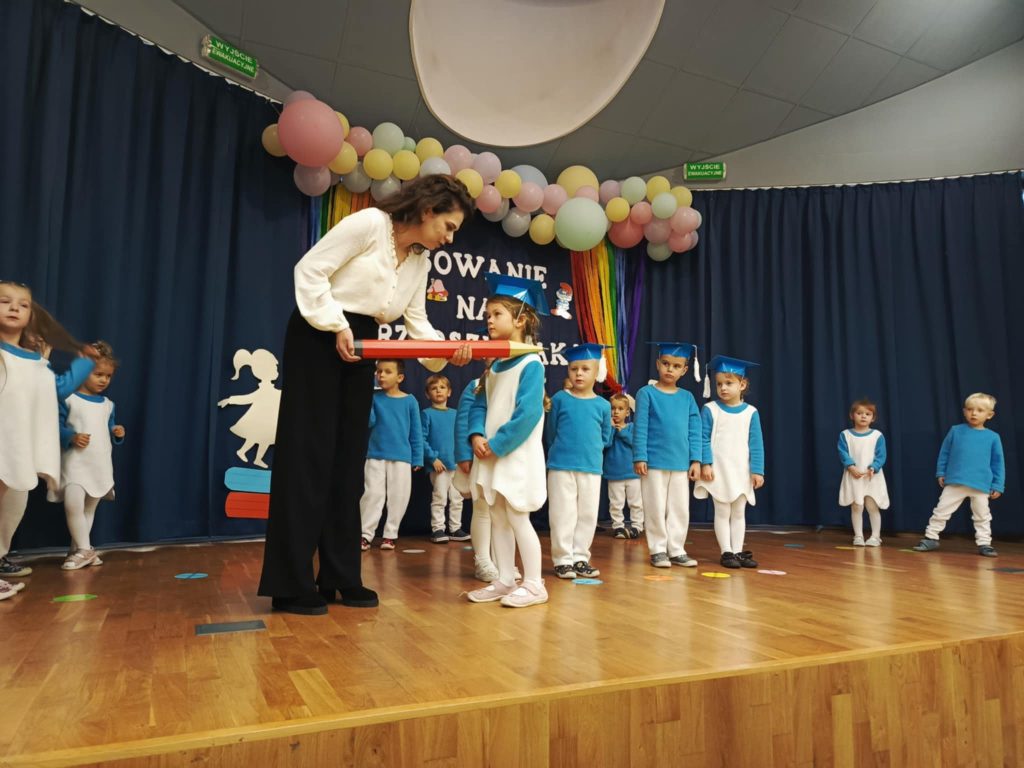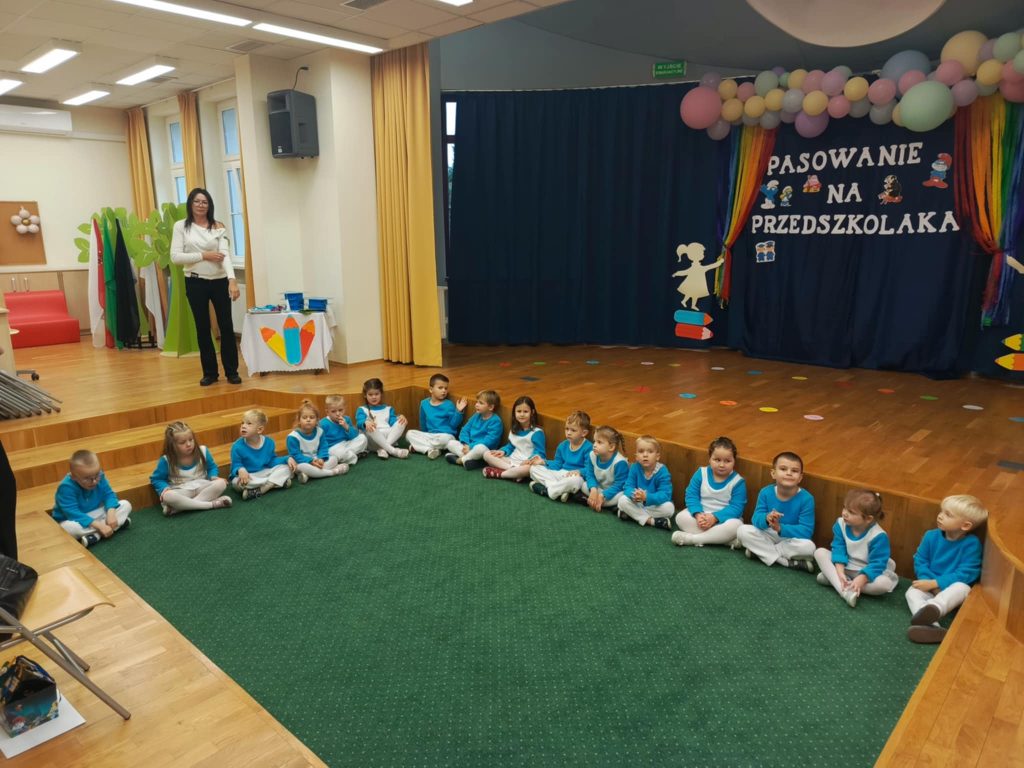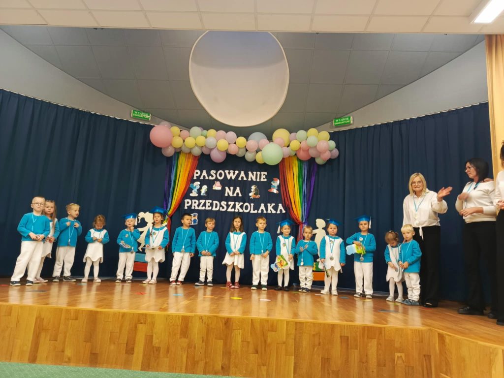 W auli przedszkolnej odbyła się wyjątkowa uroczystość – „Smerfne pasowanie Tego dnia sala zamieniła się w zaczarowaną wioskę Smerfów, pełną niebieskich postaci. Bohaterami wydarzenia były 4 – latki z grupy Smerfów Spotkanie rozpoczęło się powitaniem gości oraz programem artystycznym . Dzieci zaprezentowały piosenki, wierszyki i taniec inspirowany smerfowym światem. Następnie przedszkolaki złożyły uroczyste ślubowanie . Kulminacyjnym momentem wydarzenia było pasowanie na przedszkolaka, podczas którego 5 dzieci – Pelagia , Wiktor, Amelia, Igor i Iga zostały oficjalnie przyjęte do społeczności przedszkolnej. Wszystkie dzieci otrzymały smerfne medale . Dużo entuzjazmu i radości wywołał świecący smerfy tort . To był dzień pełen magicznych chwil, który na długo pozostanie w pamięci małych przedszkolaków i ich bliskich