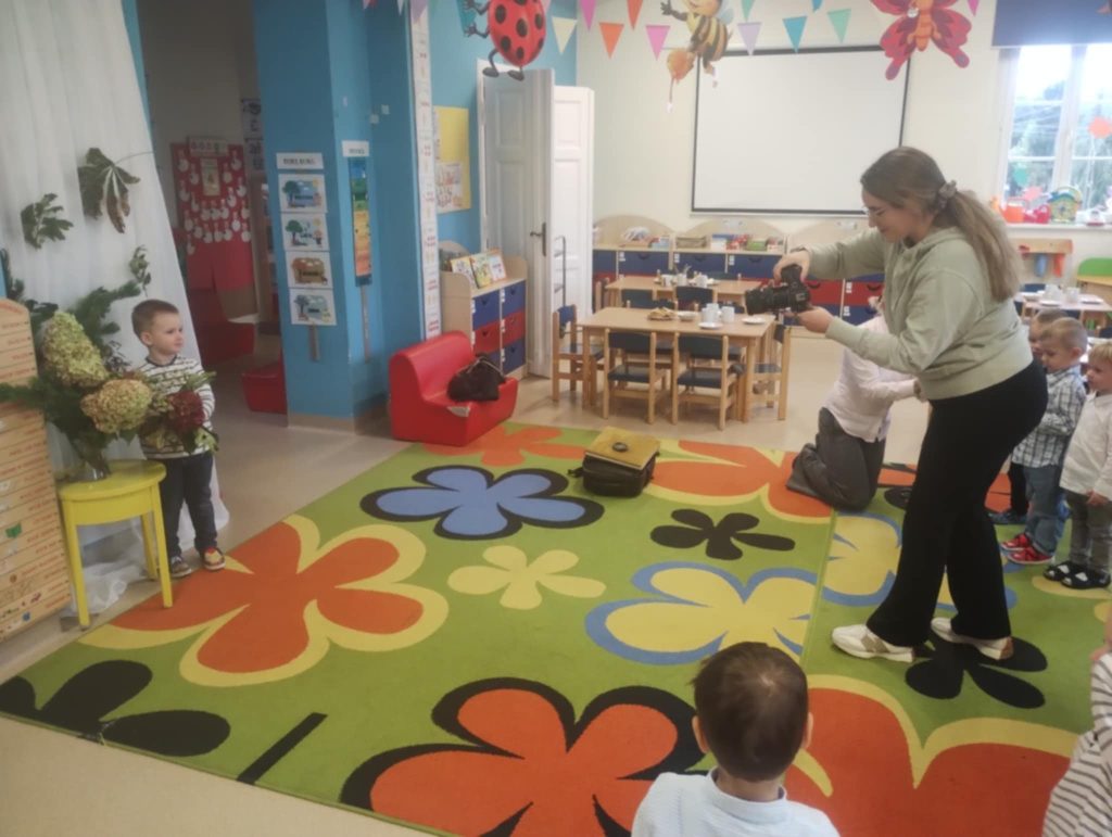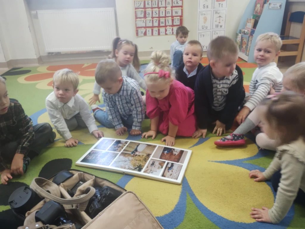 W grupie Kubusie odbyło się ciekawe spotkanie z fotografem. Dzieci dowiedziały się, na czym polega praca fotografa, jak wygląda aparat oraz jakie znaczenie ma światło i kadr. Przedszkolaki mogły same spróbować pozować do zdjęć i obserwować, jak powstaje fotografia. Spotkanie było okazją do rozwijania zainteresowań i kreatywności, a także świetną zabawą. Dziękujemy Pani Marysi za spotkanie.