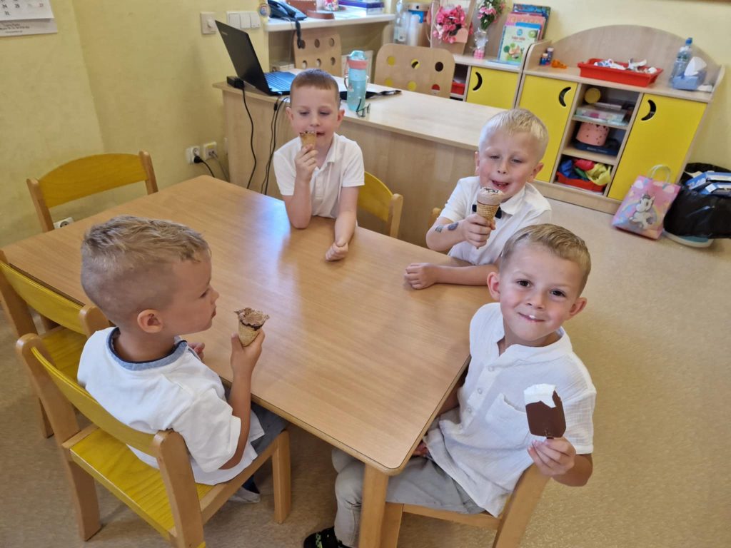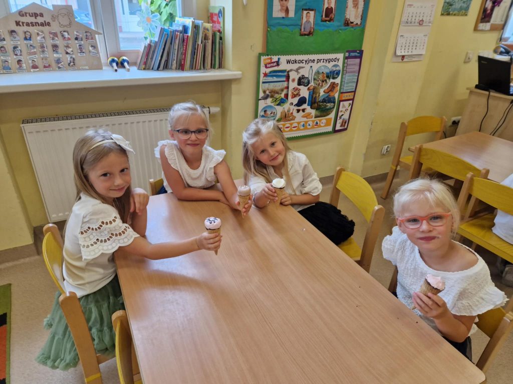 Wakacje tuż, tuż Cofnij Krasnale ostatnie dni przed upragnionymi wakacjami spędziły na zabawach ruchowych, leniuchowaniu na trawie oraz objadaniu się pysznymi lodami. Do zobaczenia we wrześniu ! 🙂