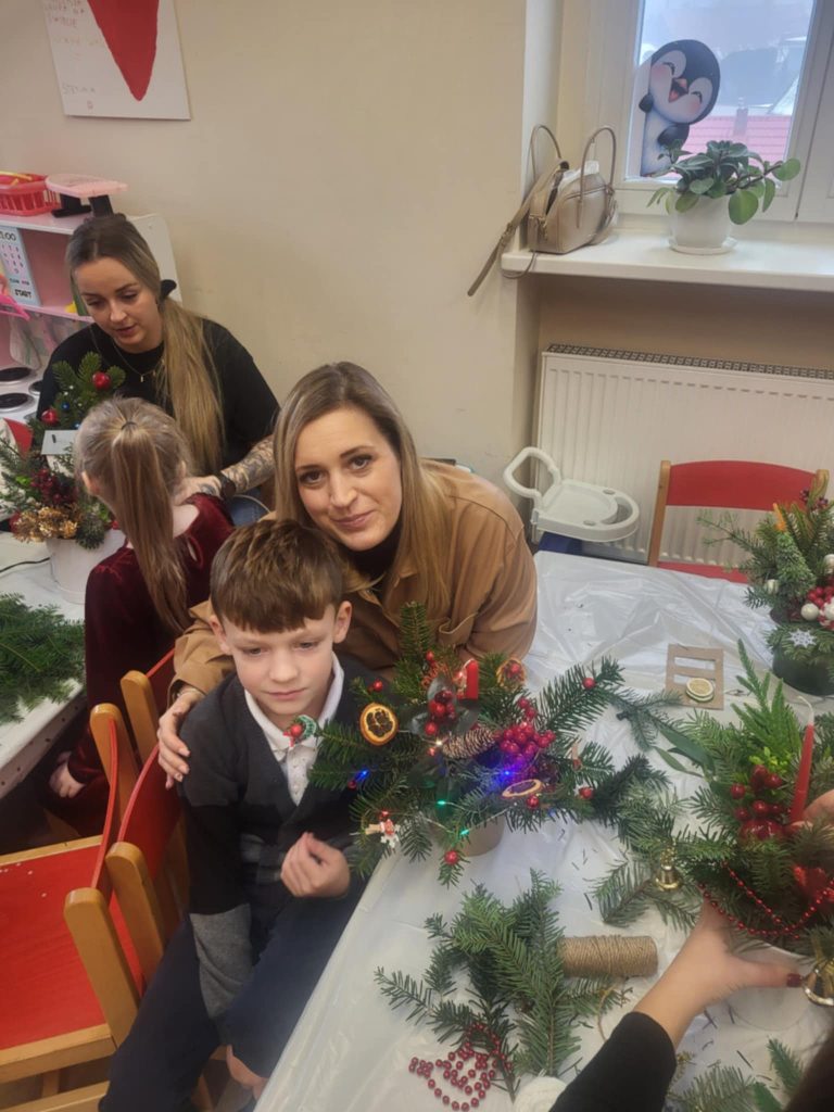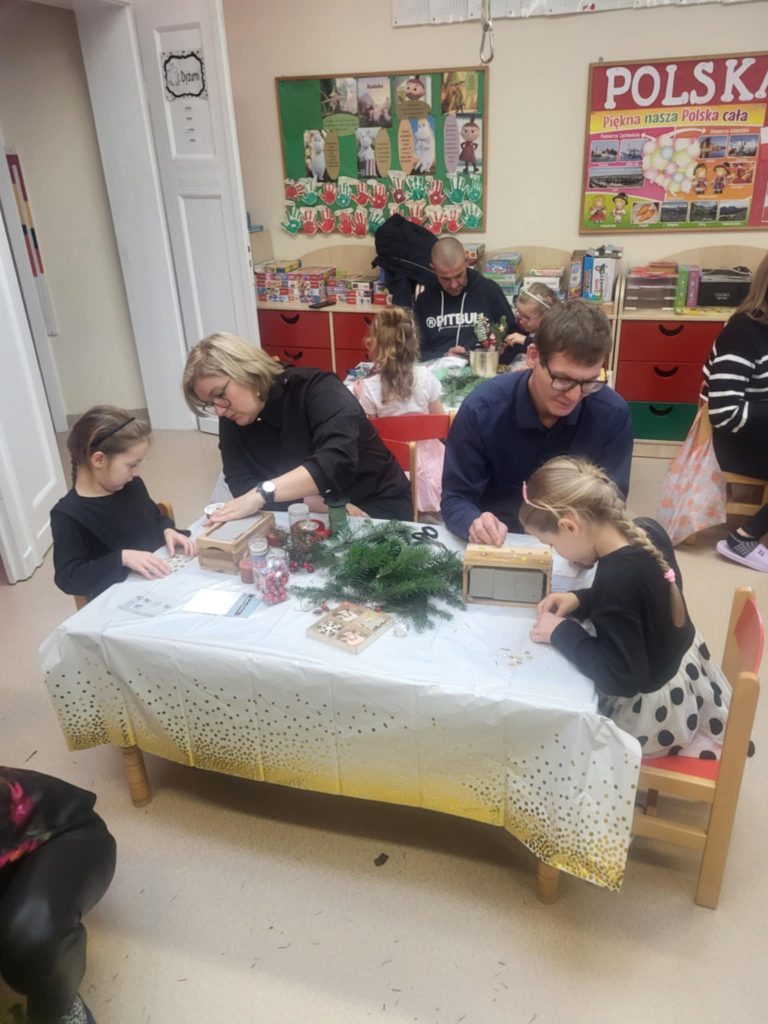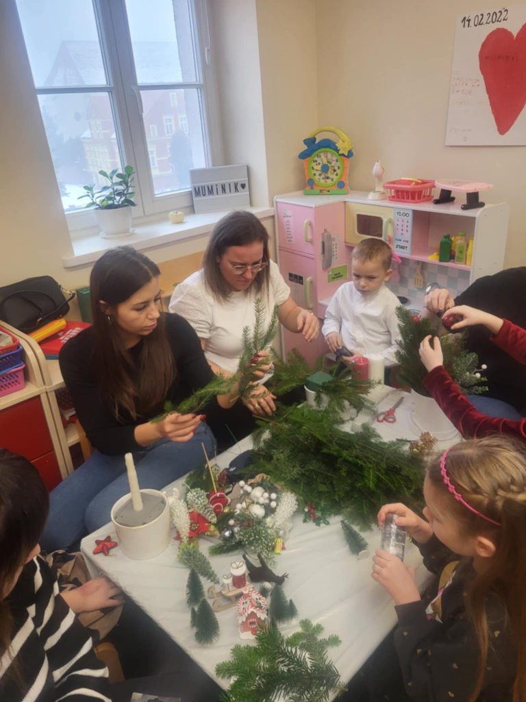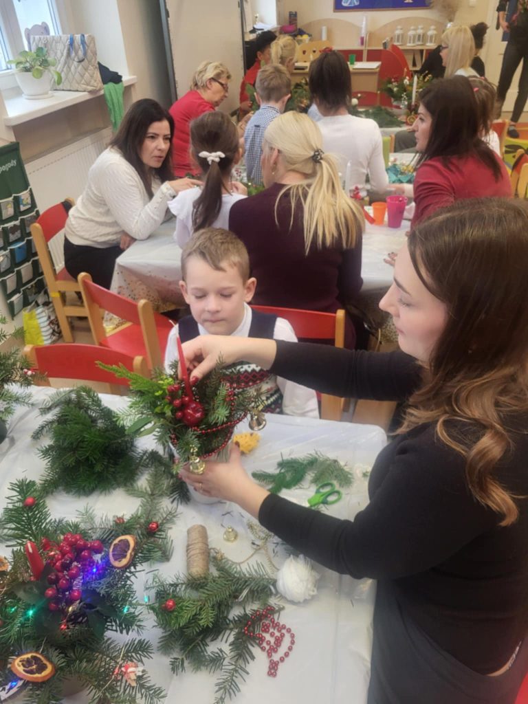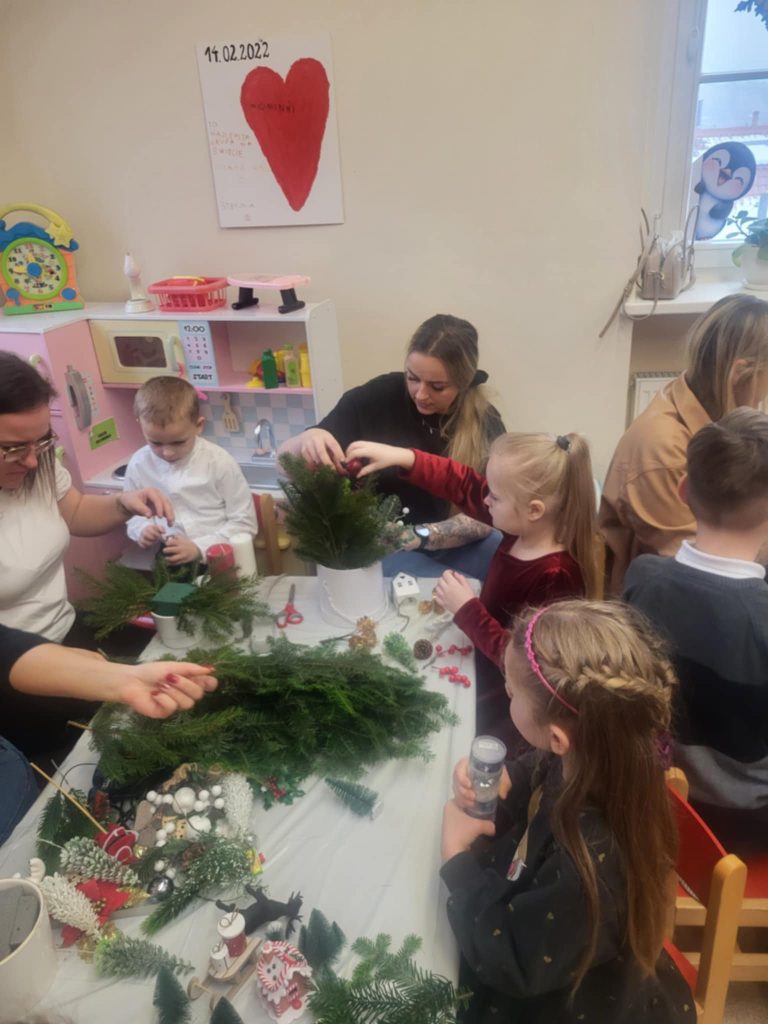W grupie Muminki odbyły się wyjątkowe Bożonarodzeniowe warsztaty, podczas których dzieci wspólnie z rodzicami tworzyły piękne, świąteczne stroiki. Atmosfera była pełna radości, twórczej energii oraz zapachu świątecznych gałązek i ozdób.Podczas zajęć dzieci rozwijały swoją kreatywność, sprawność manualną oraz umiejętność współpracy. Powstały oryginalne, kolorowe dekoracje, które z pewnością wprowadzą świąteczny klimat do domów naszych przedszkolaków