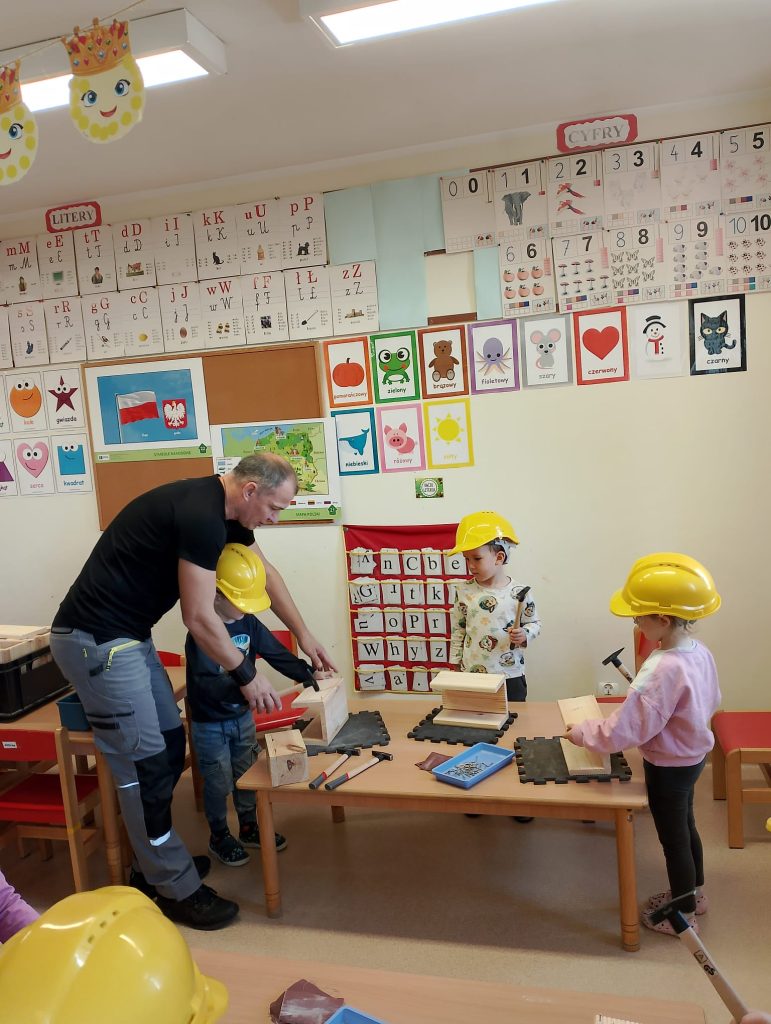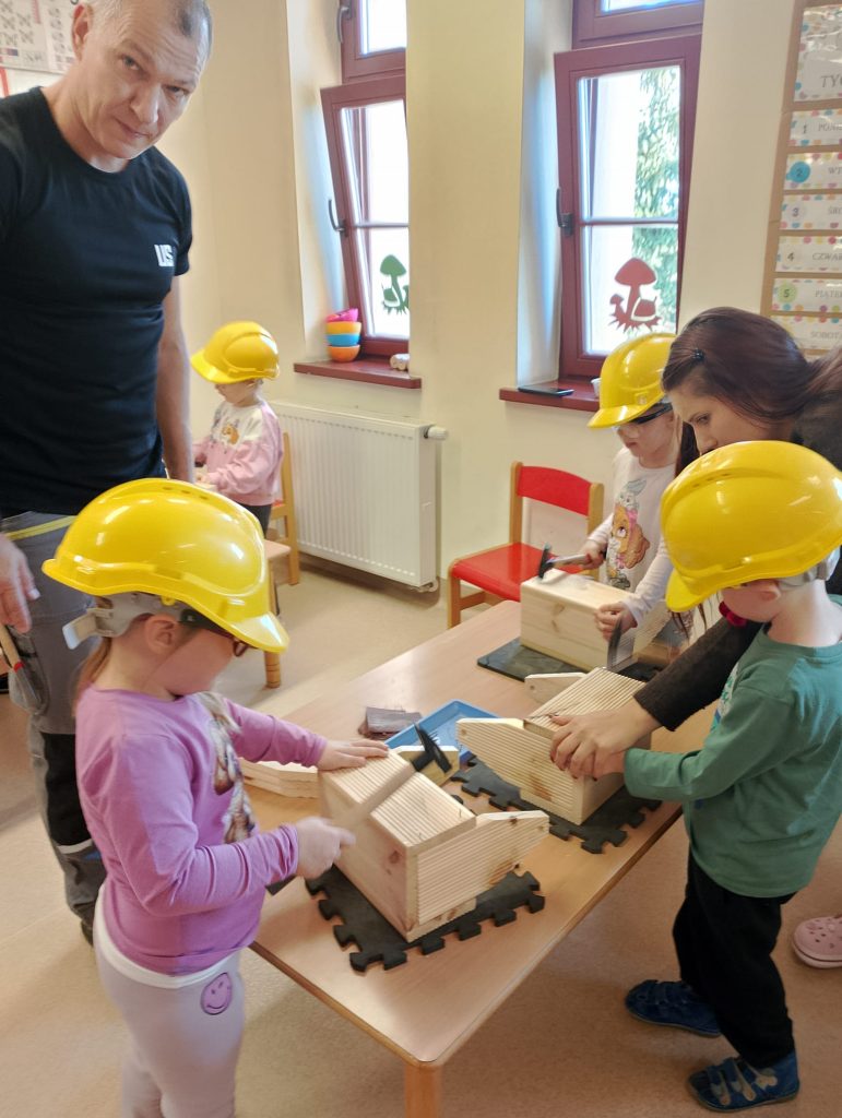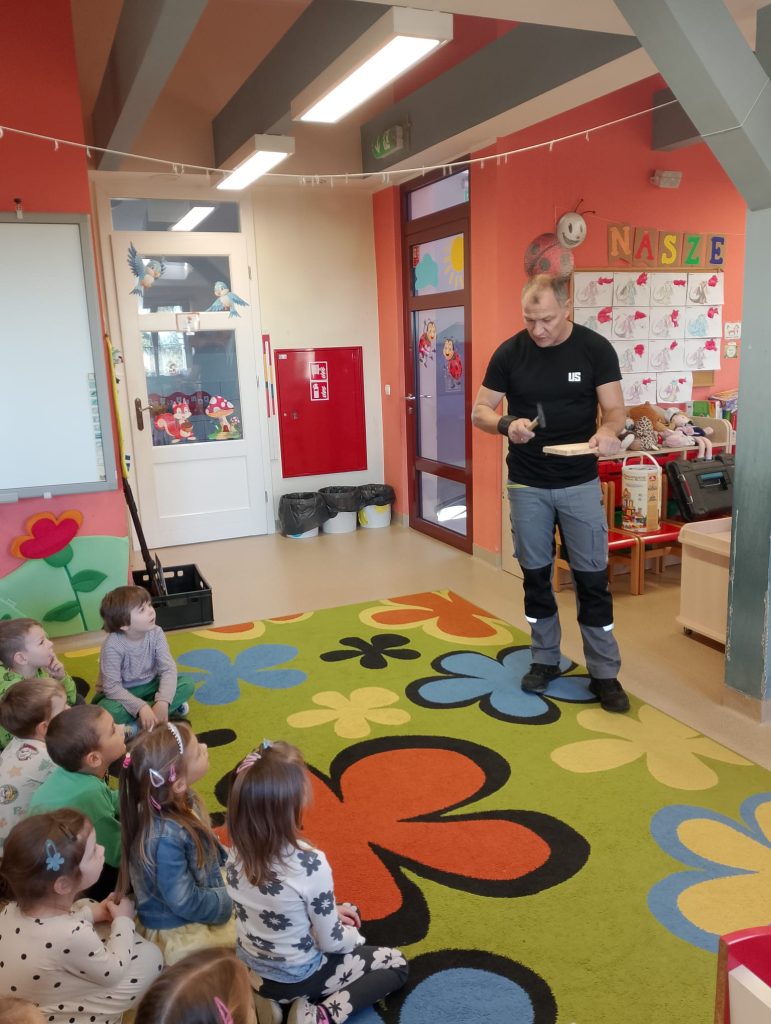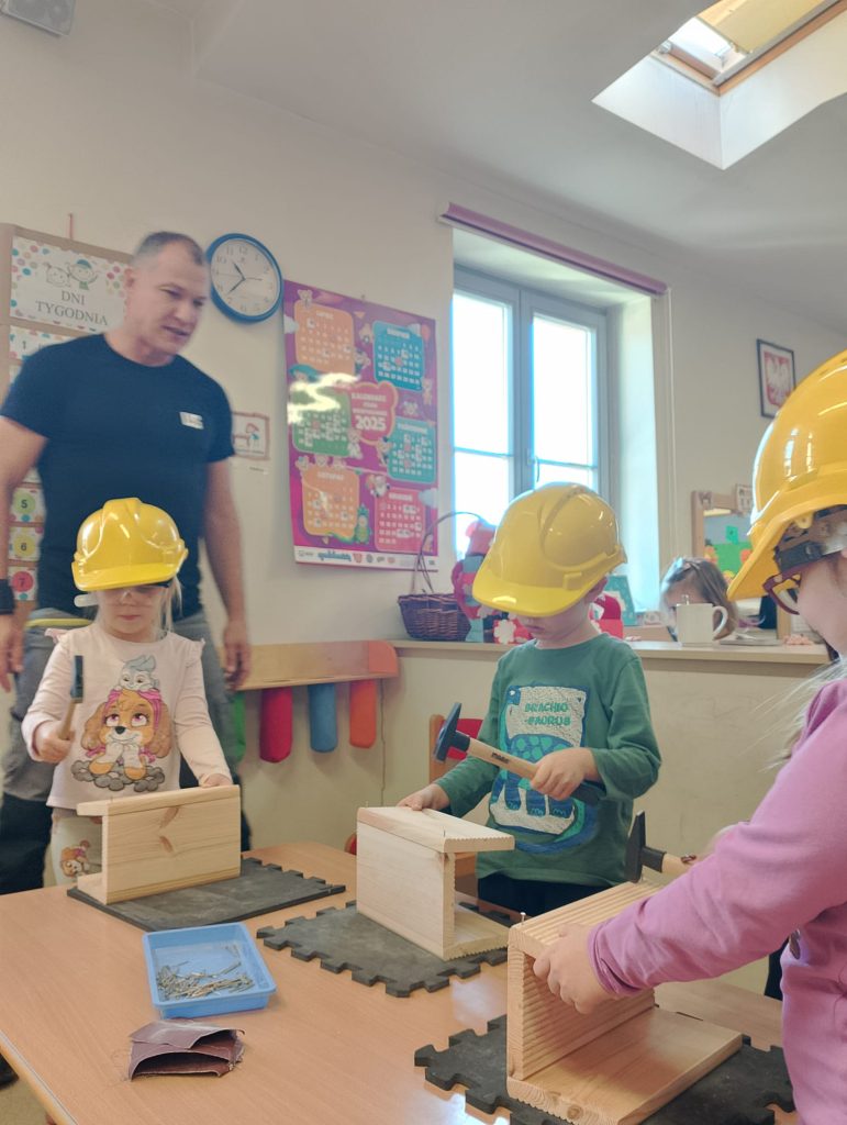W grupie Biedronek odbyły się niezwykle ciekawe warsztaty stolarskie, które poprowadził Tumko Team. Pan Krzysztof wprowadził dzieci w fascynujący świat pracy stolarza. Przedszkolaki miały okazję zobaczyć z bliska różne narzędzia stolarskie – młotek, miarkę, wkrętarkę czy papier ścierny – i dowiedzieć się, do czego służą.Po krótkim wprowadzeniu teoretycznym dzieci z zapałem przystąpiły do pracy. Każdy mały stolarz, przy niewielkiej pomocy prowadzącego, samodzielnie wykonał swoją drewnianą skrzyneczkę. Na zakończenie każdy uczestnik z dumą zaprezentował swoje dzieło i zabrał je do domu jako pamiątkę tego wyjątkowego dnia.Serdecznie dziękujemy za ciekawe i inspirujące zajęcia.