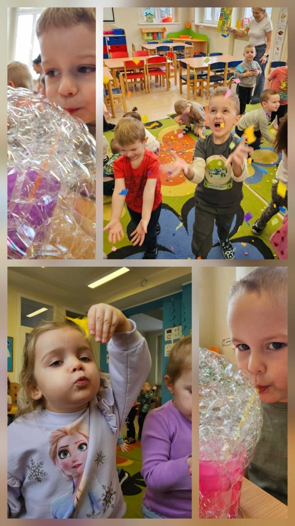 😄 🌈Warsztaty zorganizowane przez panie z ” Areny kreatywnej edukacji” w których uczestniczyły grupa Kubusiów i Kotków z cyklu zajęć o czterech żywiołach. Dziś skupiliśmy się na POWIETRZU. Przedszkolaki odkrywały różnice pomiędzy ciepłym i zimnym powietrzem, dzielnie realizowali zabawy wspierające rozwój narządu artykulacyjnego, a niektórzy doświadczali dziś nawet zmysłem smaku To był ogrom dziecięcej energii i wielkiego zaangażowania. A BYŁO CO ROBIĆ GDY W RUCH POSZŁO WŁASNORĘCZNIE WYKONANE KONFETTI 💨🫧