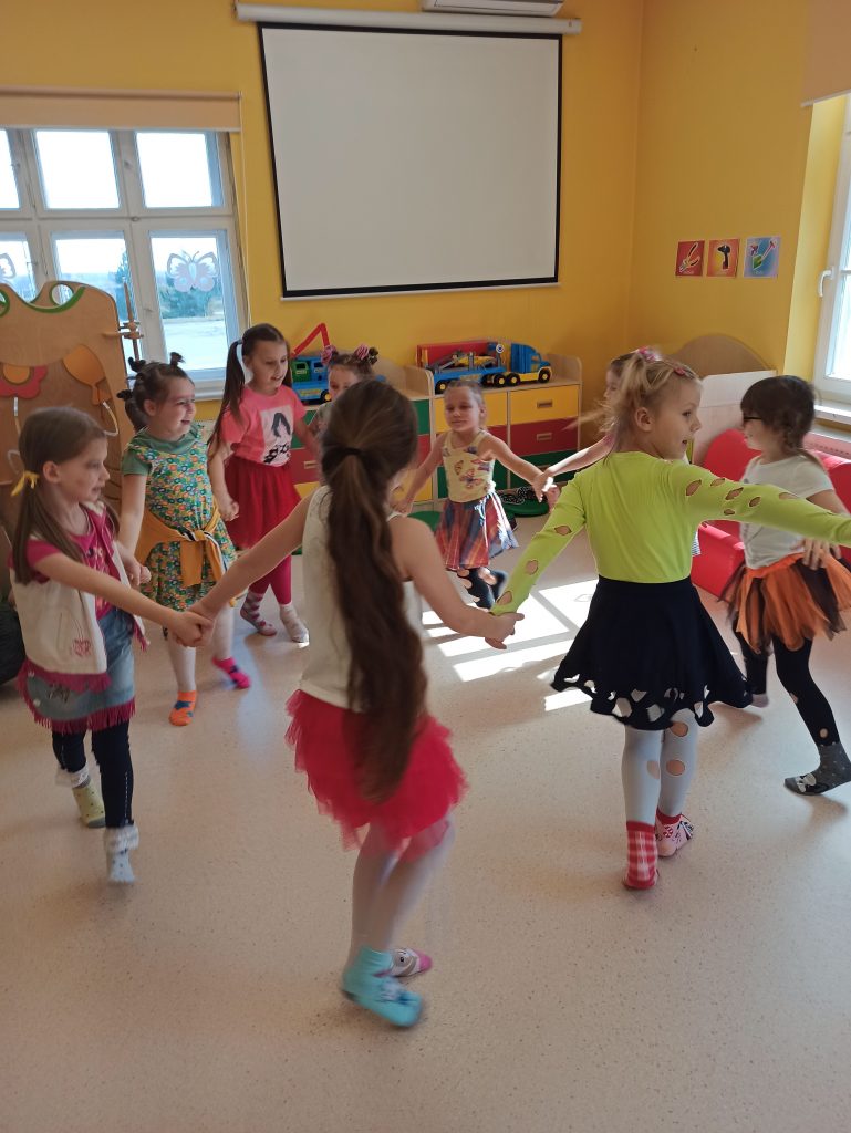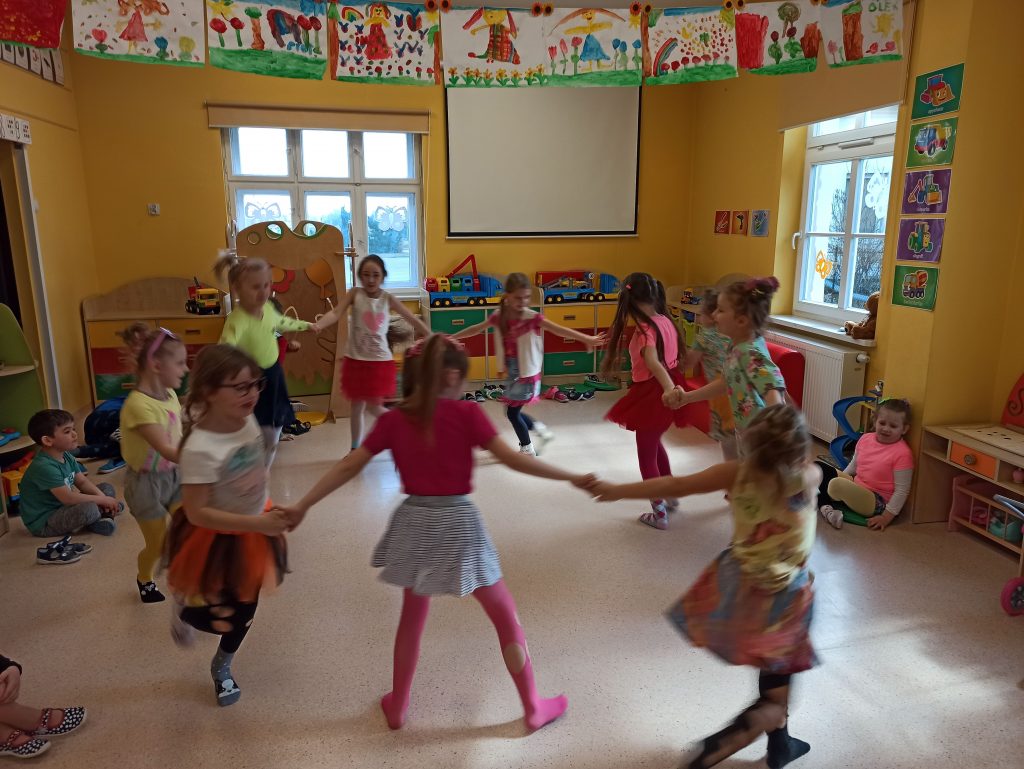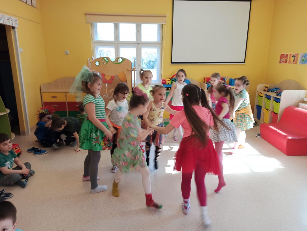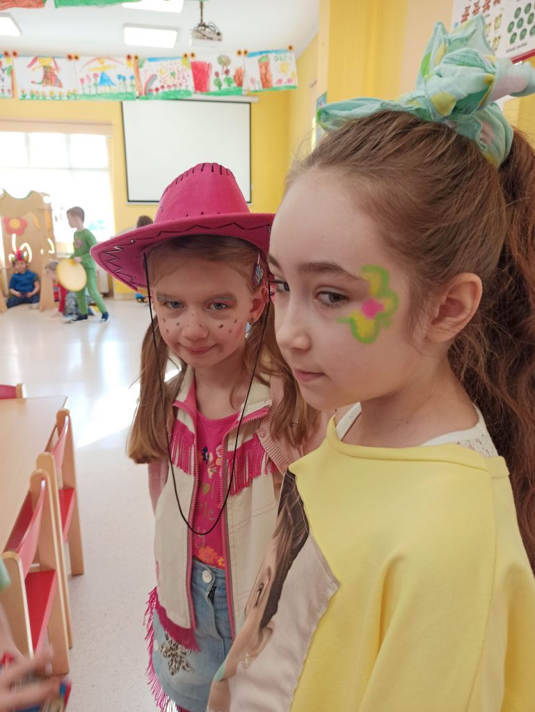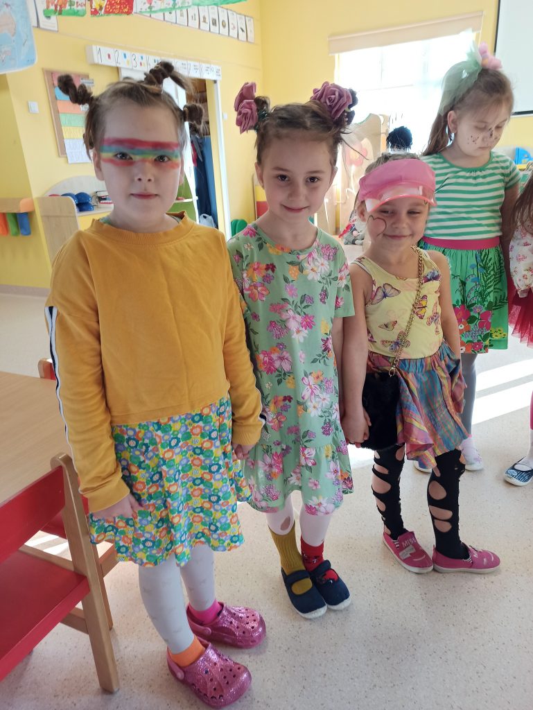 Wiosenna radość Cofnij Dzieci z grupy Zajączki, swoimi kolorowymi strojami wyraziły radość z nadejścia wiosny.