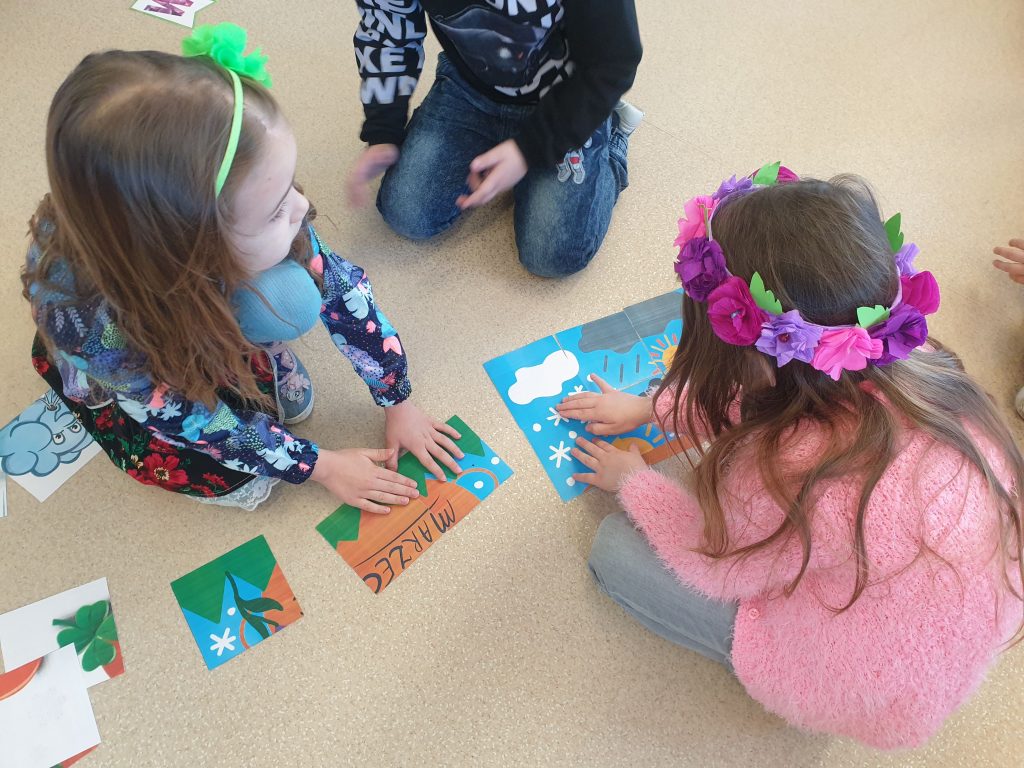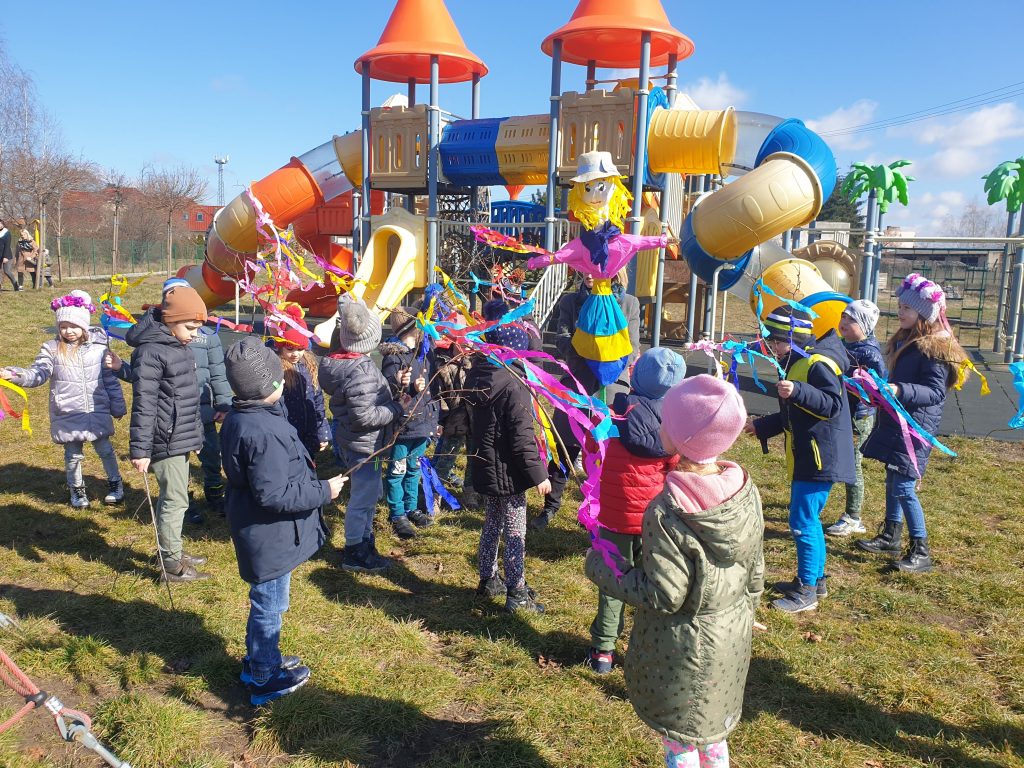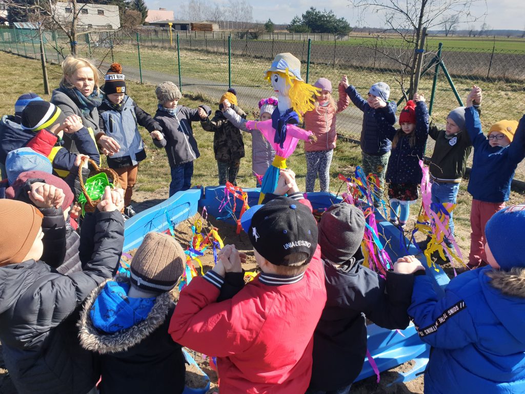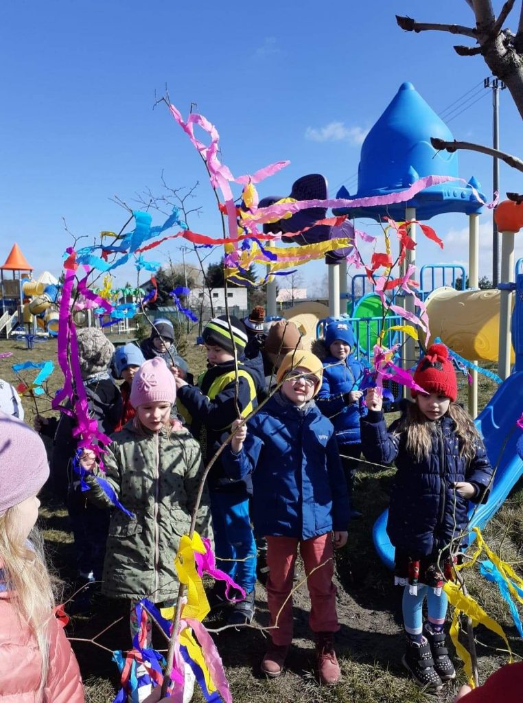 Dzieci po odczytani listu wykonały gaiki, a potem wspólnie wyruszyły w poszukiwaniu wiosennych oznak. Podczas spaceru dzieci miały do wykonania kilka zadań, które doprowadziły ich do spotkania z Marzanną. Na koniec Kubusie zaśpiewały piosenkę i pożegnały się z Zimą.
