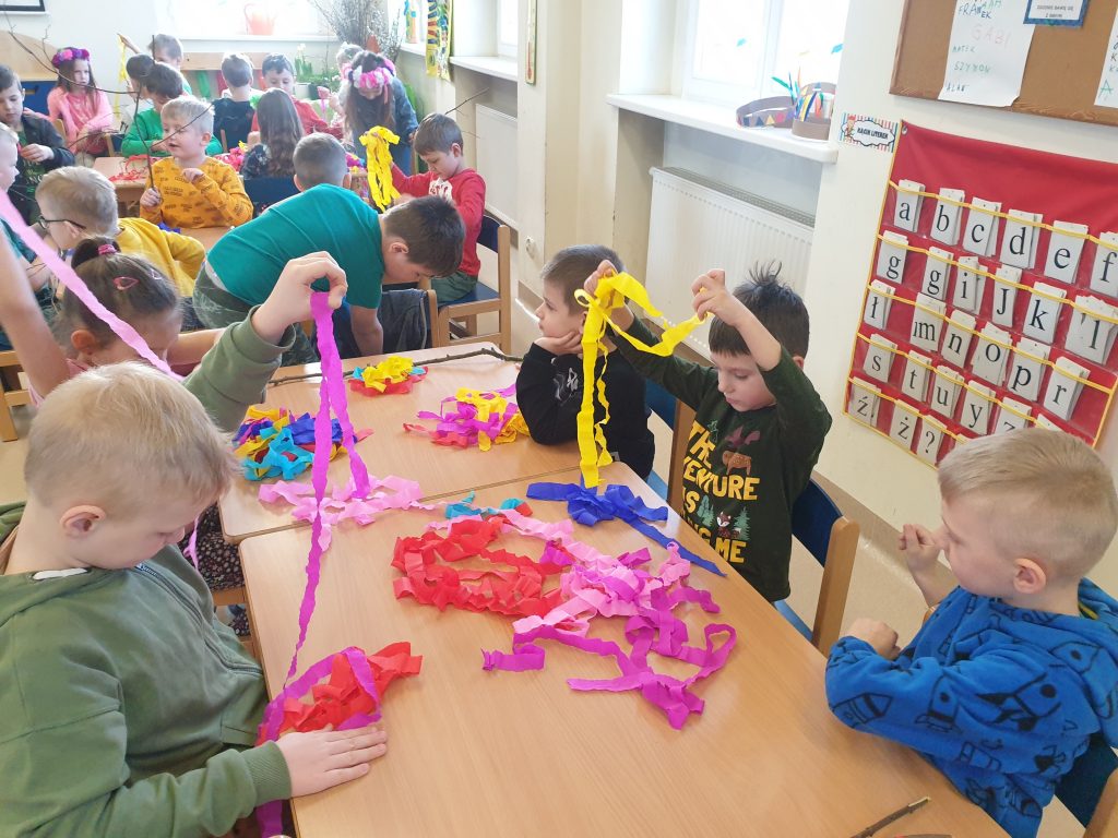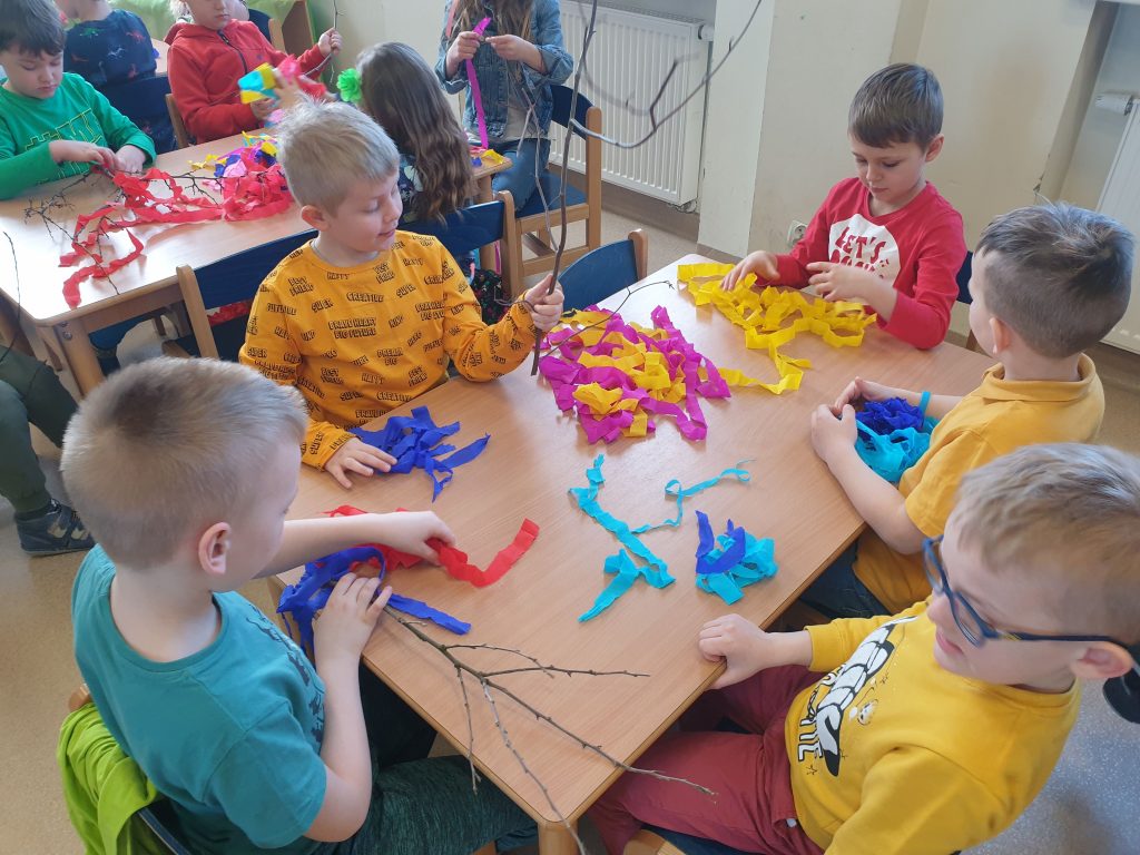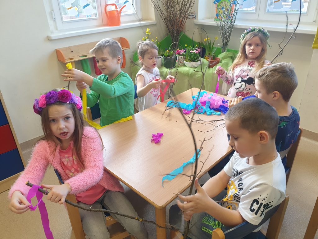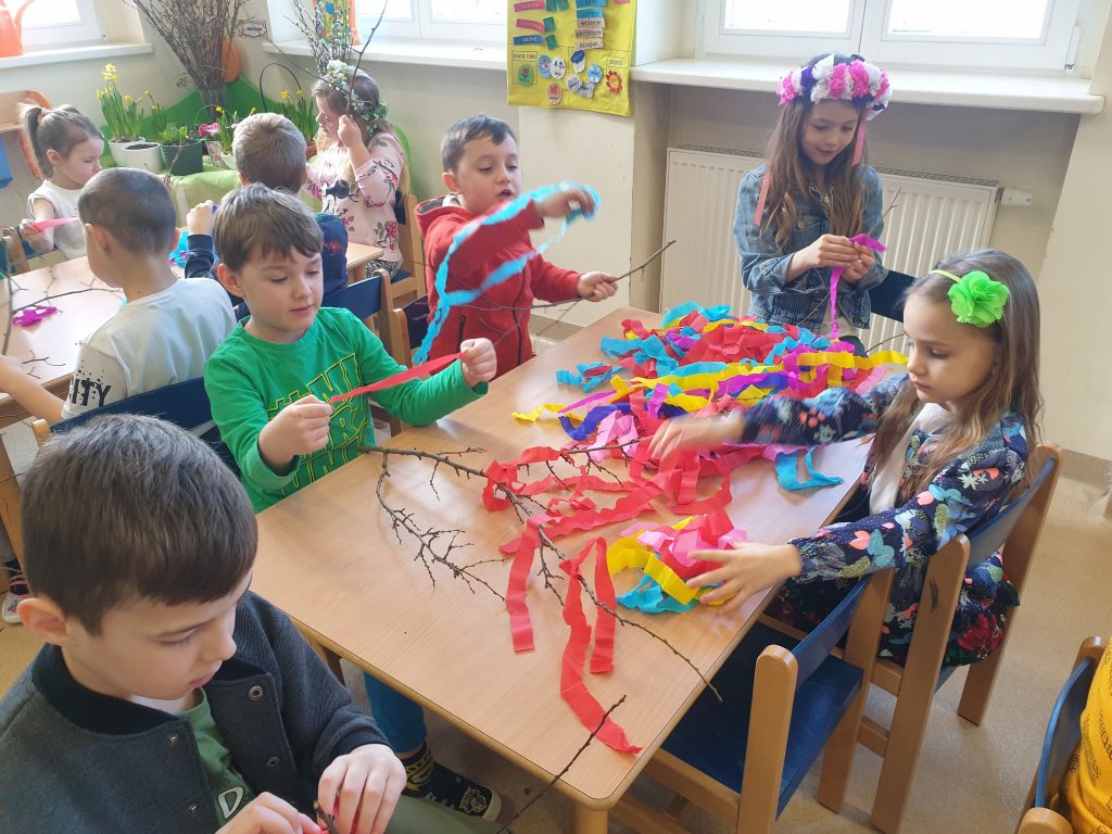 Dzieci po odczytani listu wykonały gaiki, a potem wspólnie wyruszyły w poszukiwaniu wiosennych oznak. Podczas spaceru dzieci miały do wykonania kilka zadań, które doprowadziły ich do spotkania z Marzanną. Na koniec Kubusie zaśpiewały piosenkę i pożegnały się z Zimą.