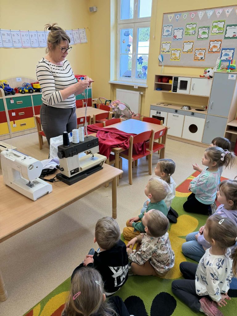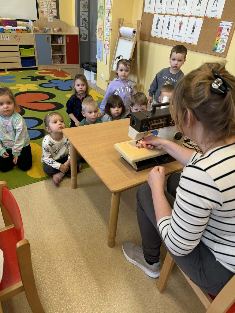 Kotki dowiedziały się na czym polega praca krawcowej- wizyta Pani Asi Maluszki odwiedził wyjątkowy gość- Pani Joanna- krawcowa, która zapoznała dzieci ze swoim zawodem. Kotki miały okazję przyjrzeć się bliżej procesowi szycia oraz obejrzeć potrzebne sprzęty i akcesoria. To były interesujące zajęcia. Serdecznie dziękujemy Pani Asi za poświęcony czas 🌷