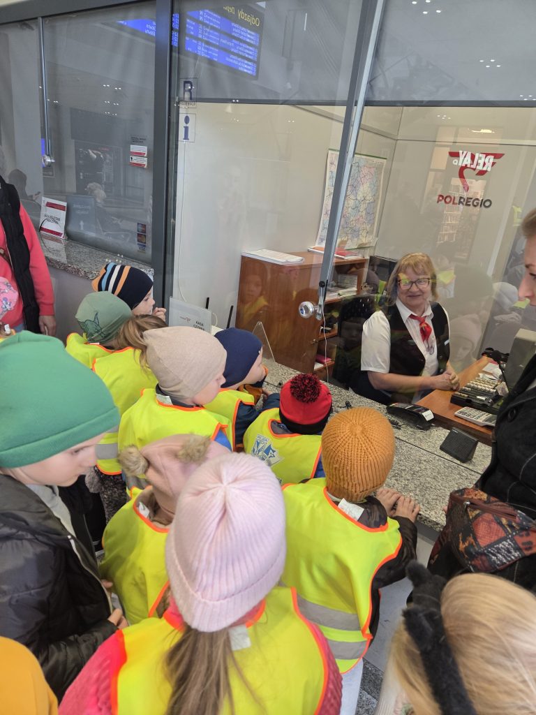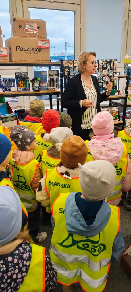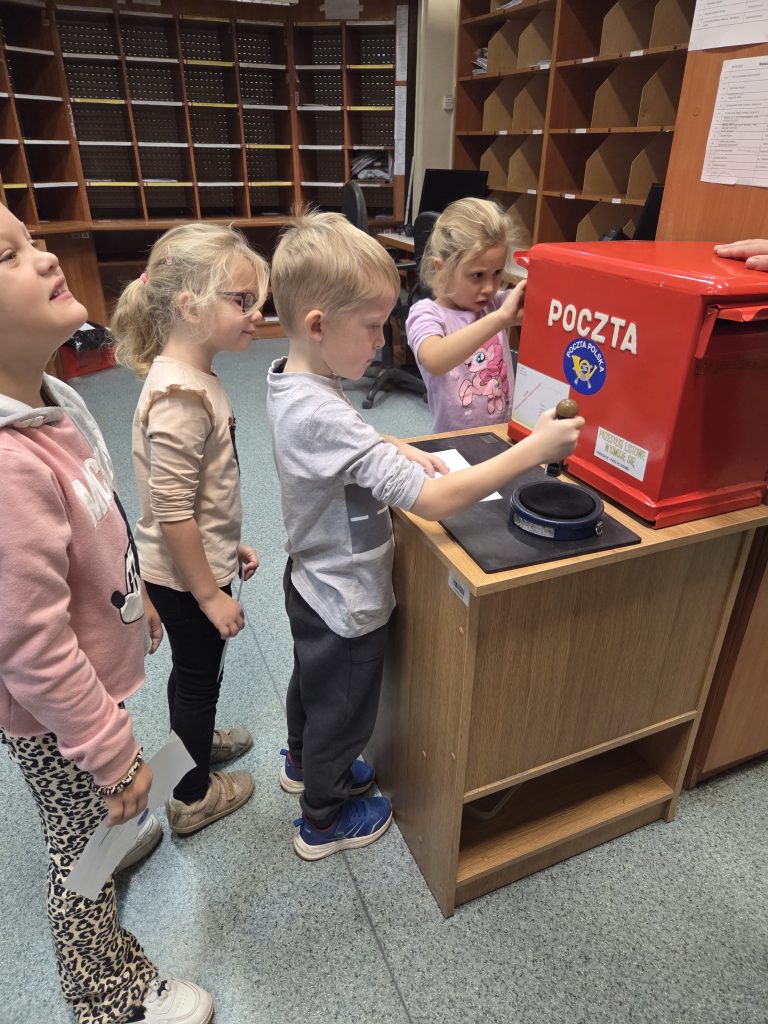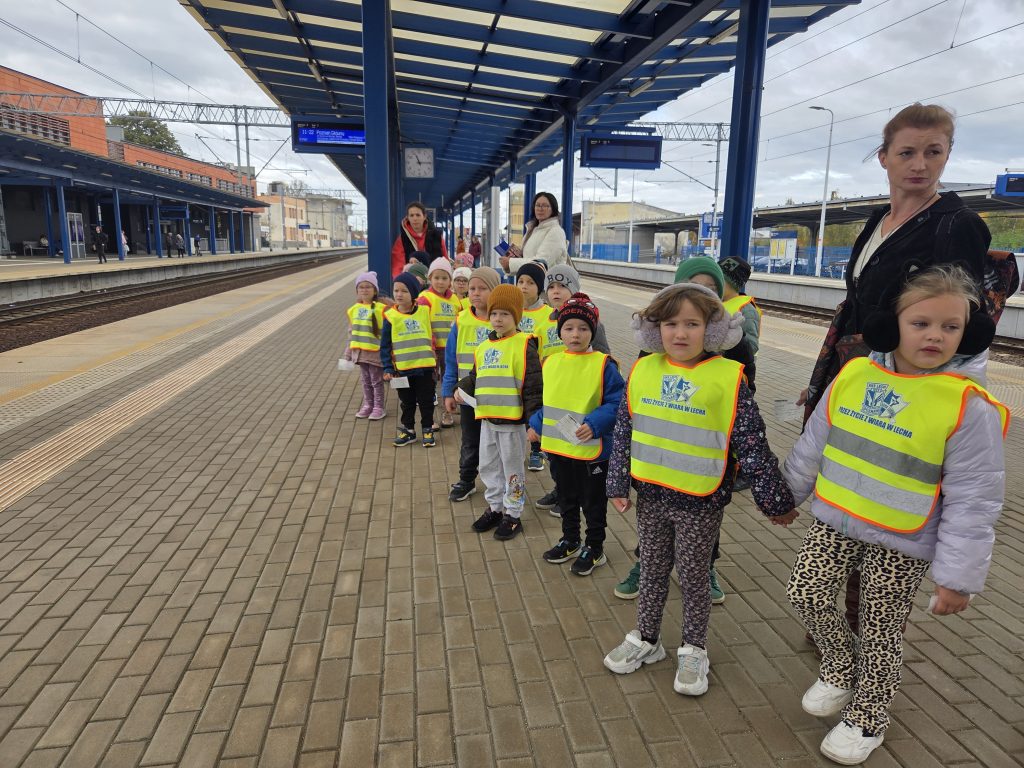 Motylki i Pszczółki wybrały się na wycieczkę na pocztę oraz dworzec kolejowy w Lesznie. Podczas wizyty na poczcie przedszkolaki dowiedziały się, jak wygląda praca listonosza, jak sortuje się listy i paczki oraz jak prawidłowo nakleić znaczek. Każde dziecko mogło wrzucić własnoręcznie przygotowany list do skrzynki pocztowej. Następnie udaliśmy się na dworzec kolejowy, gdzie dzieci obserwowały odjazdy i przyjazdy pociągów. Poznały zasady bezpiecznego zachowania się na peronie i dowiedziały się, jakie osoby pracują na kolei.To była pełna wrażeń i nowych doświadczeń wycieczka, która połączyła naukę z dobrą zabawą! 🚂📮
