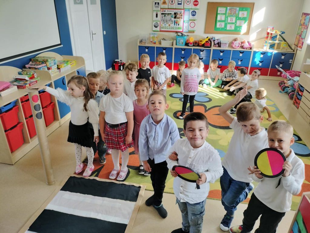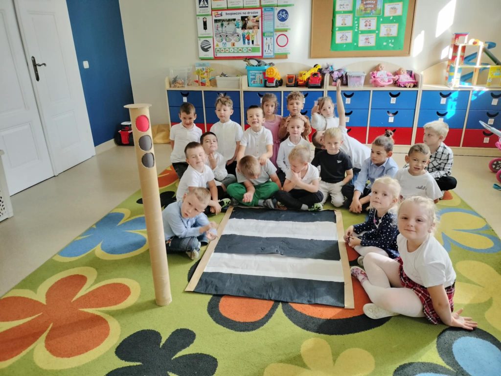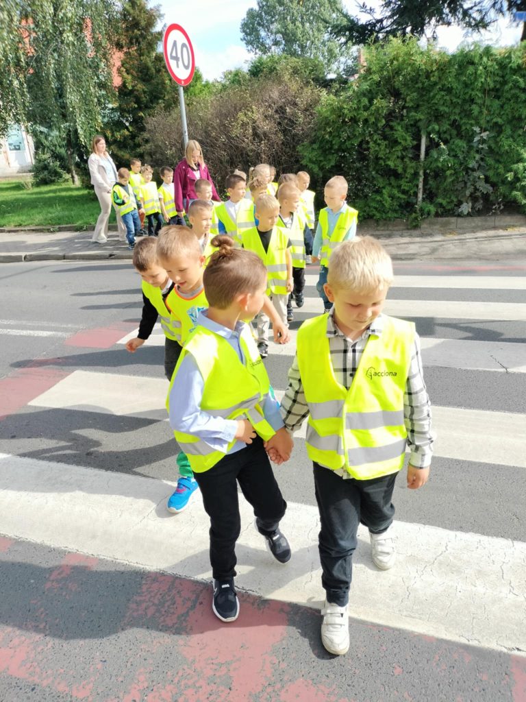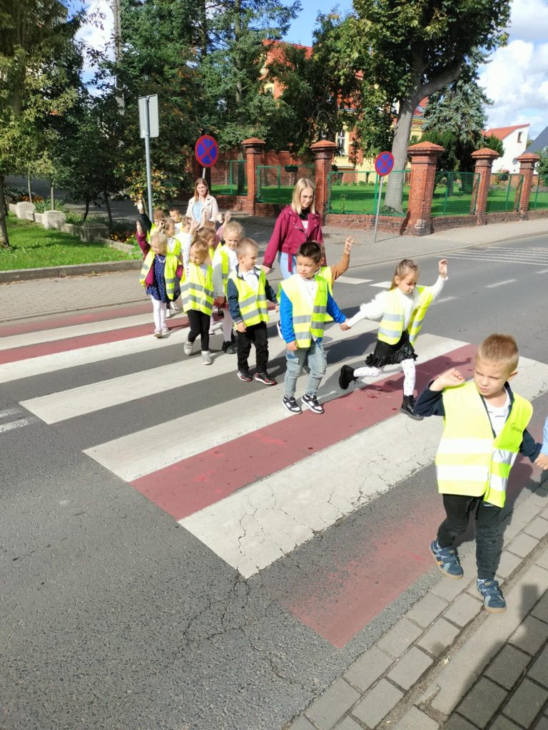 Dzieci z grupy Żabki na zajęciach poznały zasady bezpiecznego przechodzenia przez pasy, a następnie sprawdziły je w praktyce podczas spaceru. Zatrzymywaliśmy się przed przejściem, rozglądaliśmy w lewo, w prawo i jeszcze raz w lewo, a potem spokojnie przechodziliśmy w grupie. Teraz każdy wie, jak bezpiecznie poruszać się po drodze!