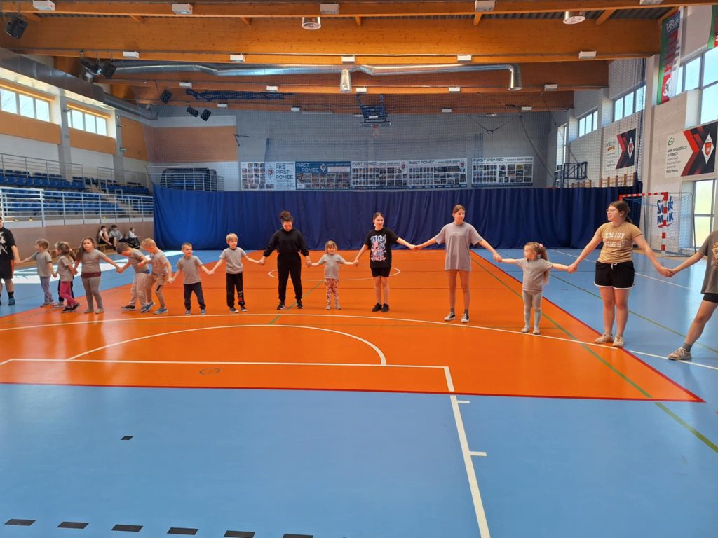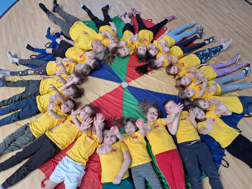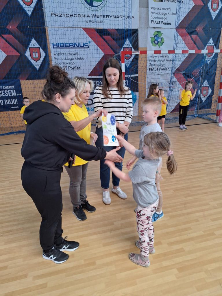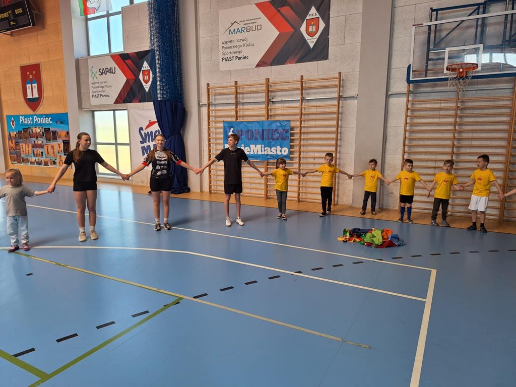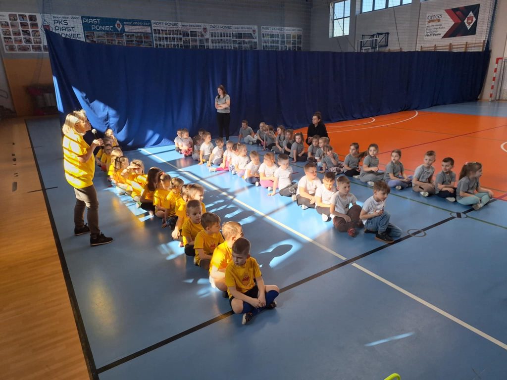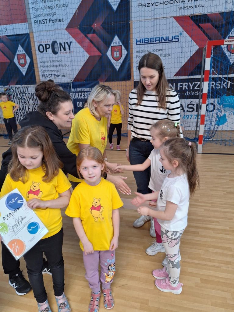 Zawody lekkoatletyczne na hali sportowej dla grupy 6-latków „Kubusie „,”Zajączki „, „Kotki” przebiegły w bardzo radosnej i sportowej atmosferze. Dzieci miały okazję wziąć udział w różnych konkurencjach dostosowanych do ich wieku i możliwości, takich jak biegi sprinterskie, skoki na piłkach oraz tory przeszkód. Każda konkurencja była okazją do świetnej zabawy, a jednocześnie rozwijała koordynację, szybkość i sprawność ruchową. W zawodach liczył się przede wszystkim udział, zaangażowanie i dobra zabawa. Dzieci dopingowały się nawzajem, ucząc się zasad fair play i współpracy w grupie. Na zakończenie każda grupa otrzymała dyplom, co sprawiło im ogromną radość i było miłym podsumowaniem całego wydarzenia. Zawody okazały się dużym sukcesem i pozostawiły wiele pozytywnych wspomnień.
