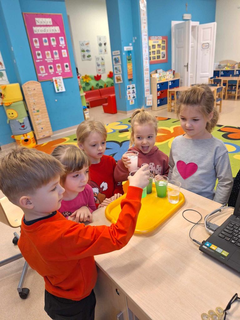 Zimowe doświadczenia W grupie Kubusie przeprowadzamy fascynujące doświadczenia! Rozpoczynamy od zrozumienia, skąd bierze się lód. Dzieci dowiadują się, że lód powstaje, gdy woda zamraża się. Wspólnie obserwujemy, czy na dworze jest taki sam mróz jak w zamrażalniku, sprawdzając, czy woda na zewnątrz zamarza podobnie jak w naszych eksperymentach. Kolejnym ciekawym doświadczeniem są kolorowe lody. Dzieci uczestniczą w procesie tworzenia lodów, dodając barwniki i obserwując, jak zmieniają się ich właściwości. To wspaniała okazja do eksploracji podstawowych pojęć chemicznych w prosty i przyjemny sposób. Kolejnym ciekawym doświadczeniem są kolorowe lody. Dzieci uczestniczą w procesie tworzenia lodów, dodając barwniki i obserwując, jak zmieniają się ich właściwości. To wspaniała okazja do eksploracji podstawowych pojęć chemicznych w prosty i przyjemny sposób.